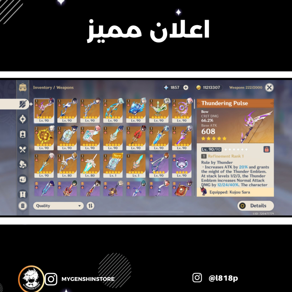 (l818p) حساب سيرفر اوروبا لفل 59 يحتوي (23 شخصية)