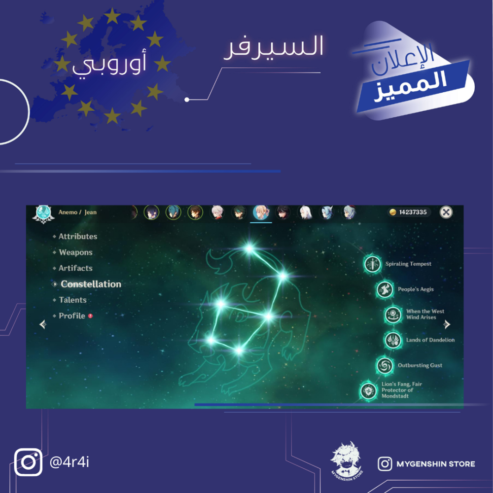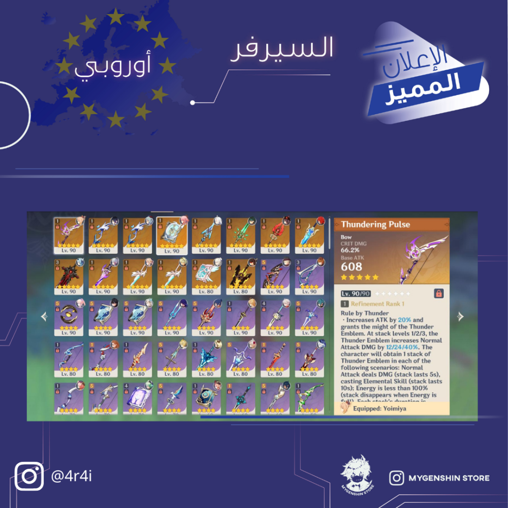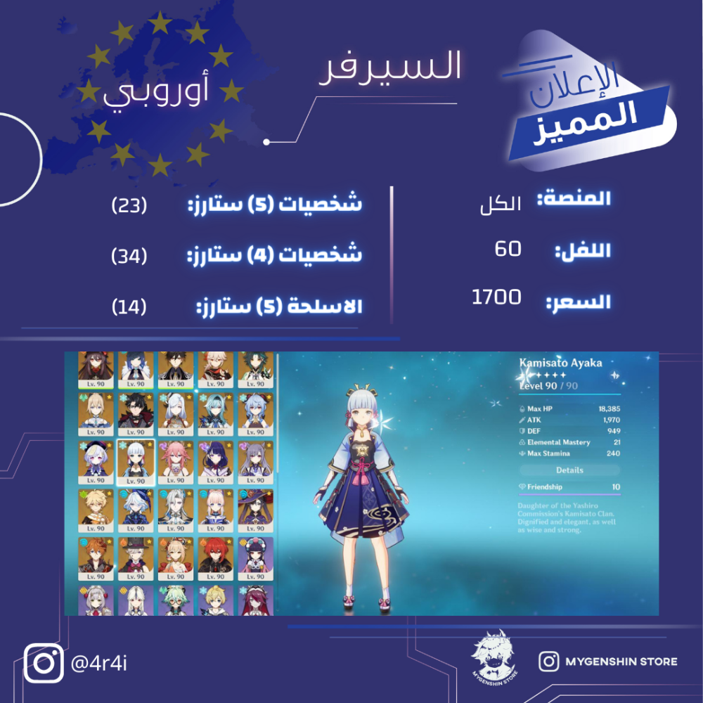 (4r4i) حساب سيرفر اوروبا لفل 60 يحتوي (23 شخصيه