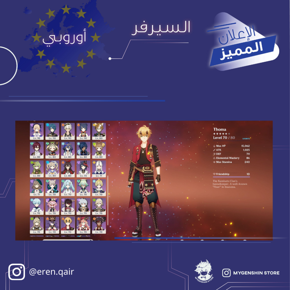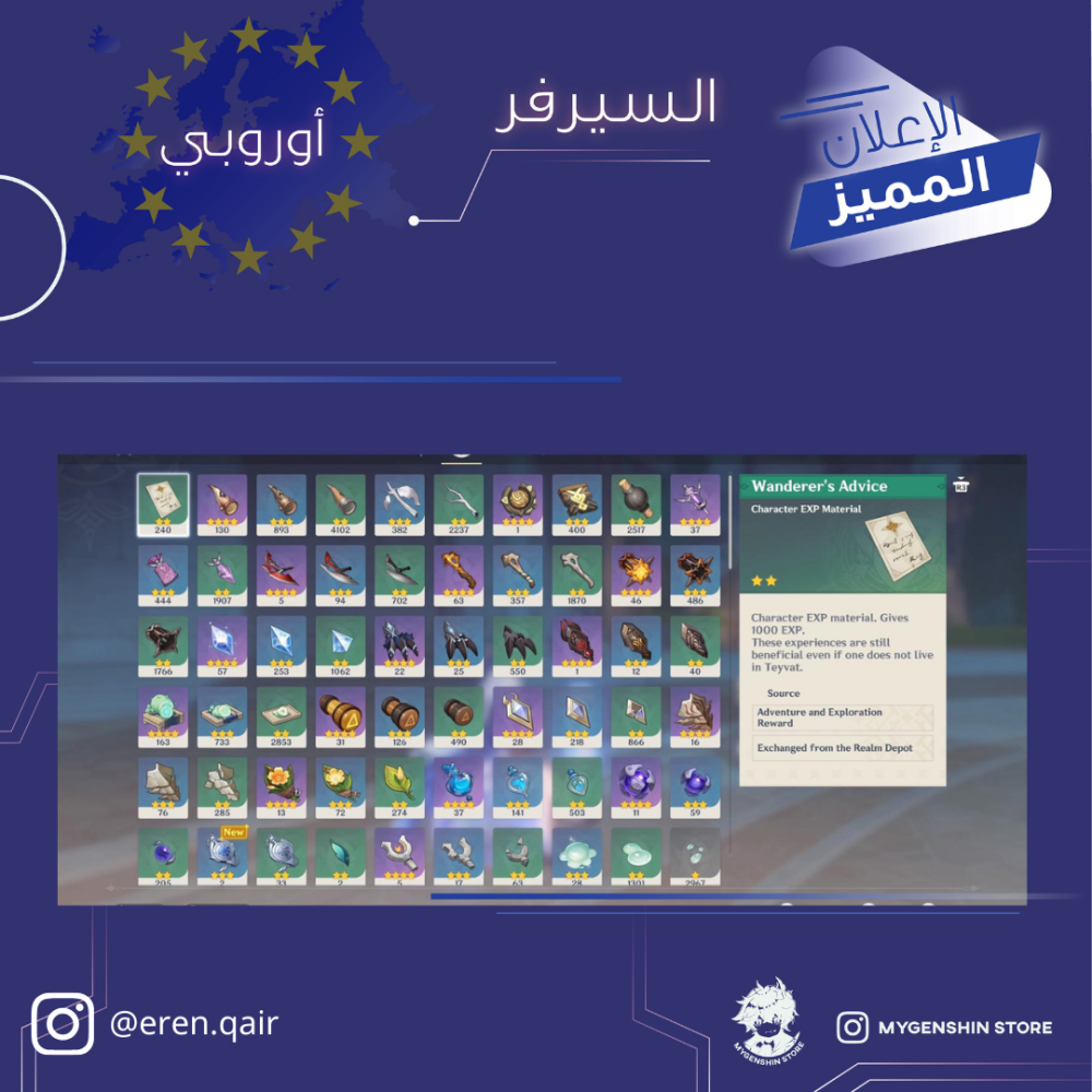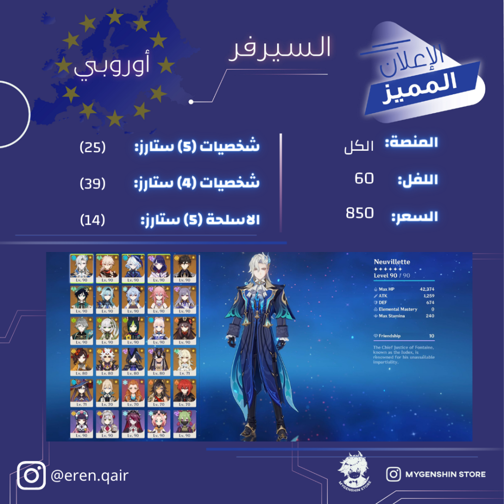 (eren.qair) حساب سيرفر اوروبا لفل 60يحتوي(25 شخصية)