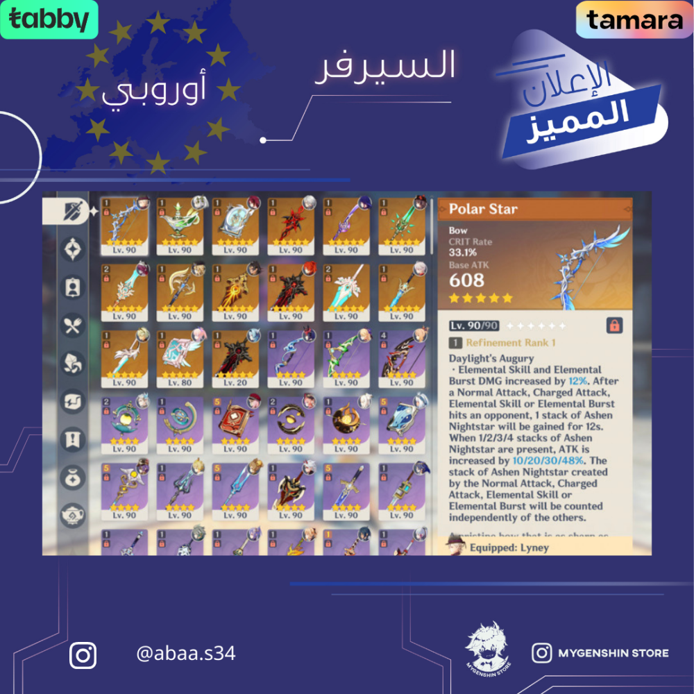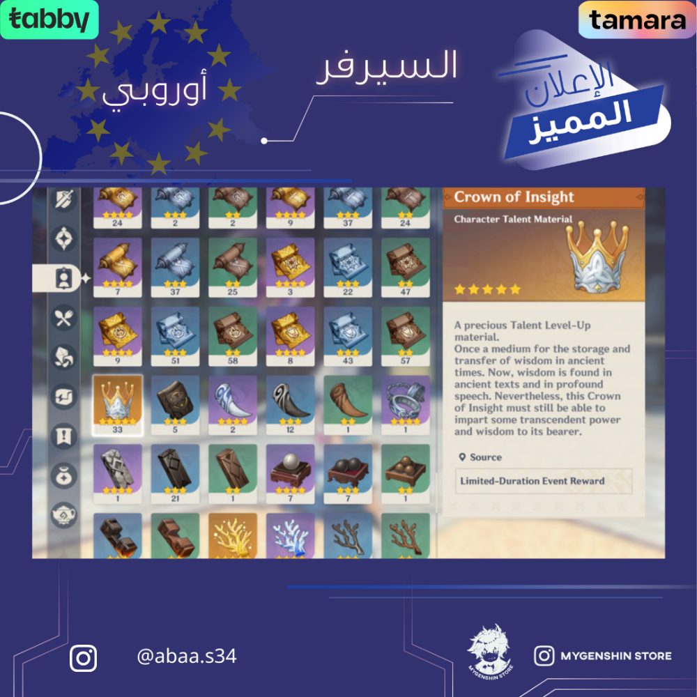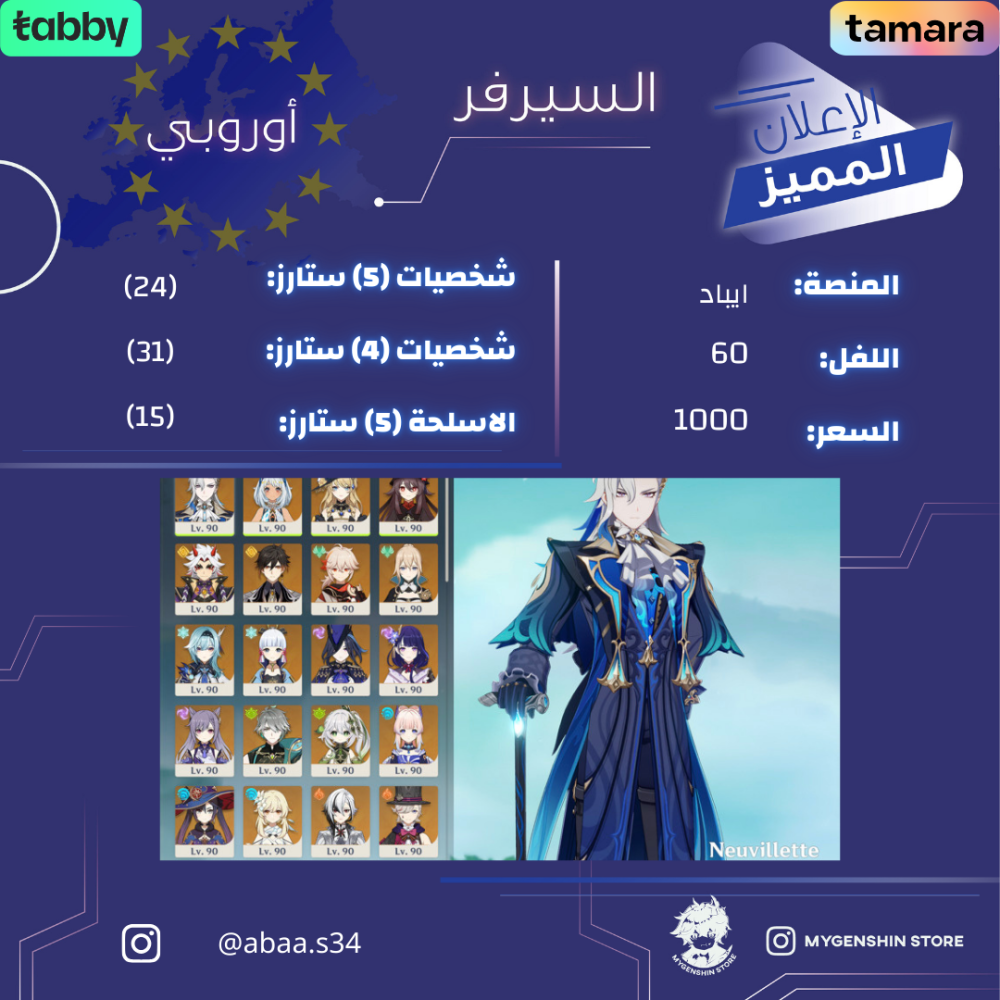 (abaa.s34) حساب سيرفر اوروبا لفل 60 يحتوي (24 شخصية)