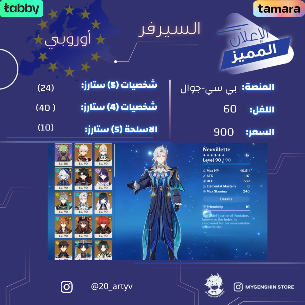 (20_artyv) حساب سيرفر اوروبا لفل 60 يحتوي ( 24 شخصية)