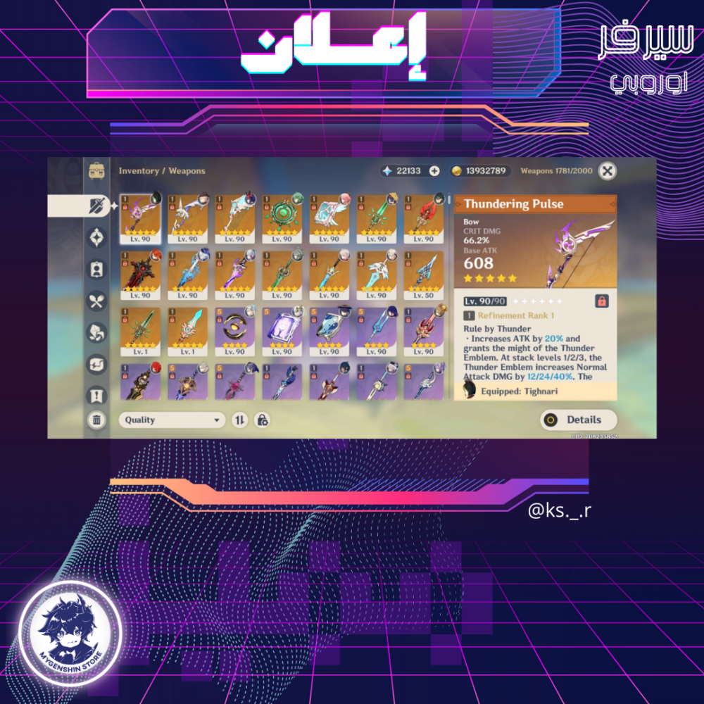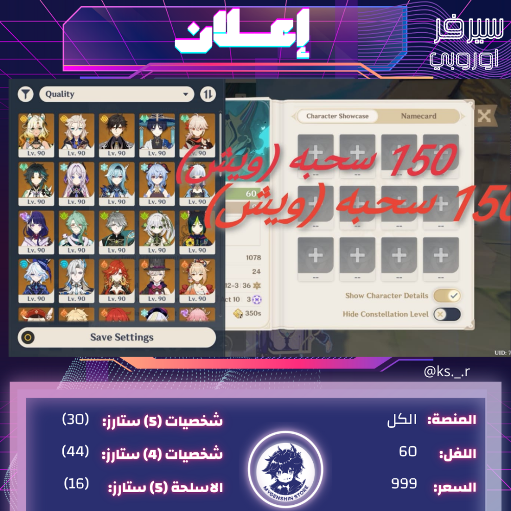 (ks._.r) حساب سيرفر اوروبا لفل 60يحتوي(30 شخصية)