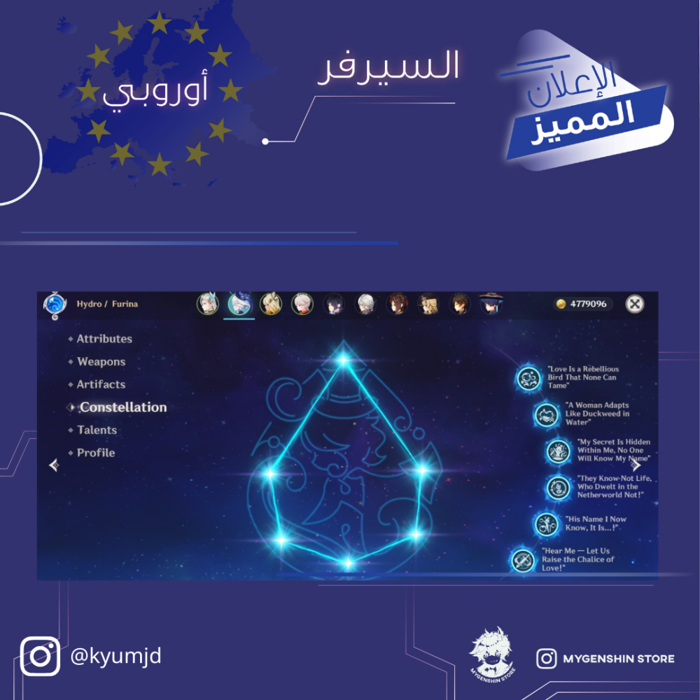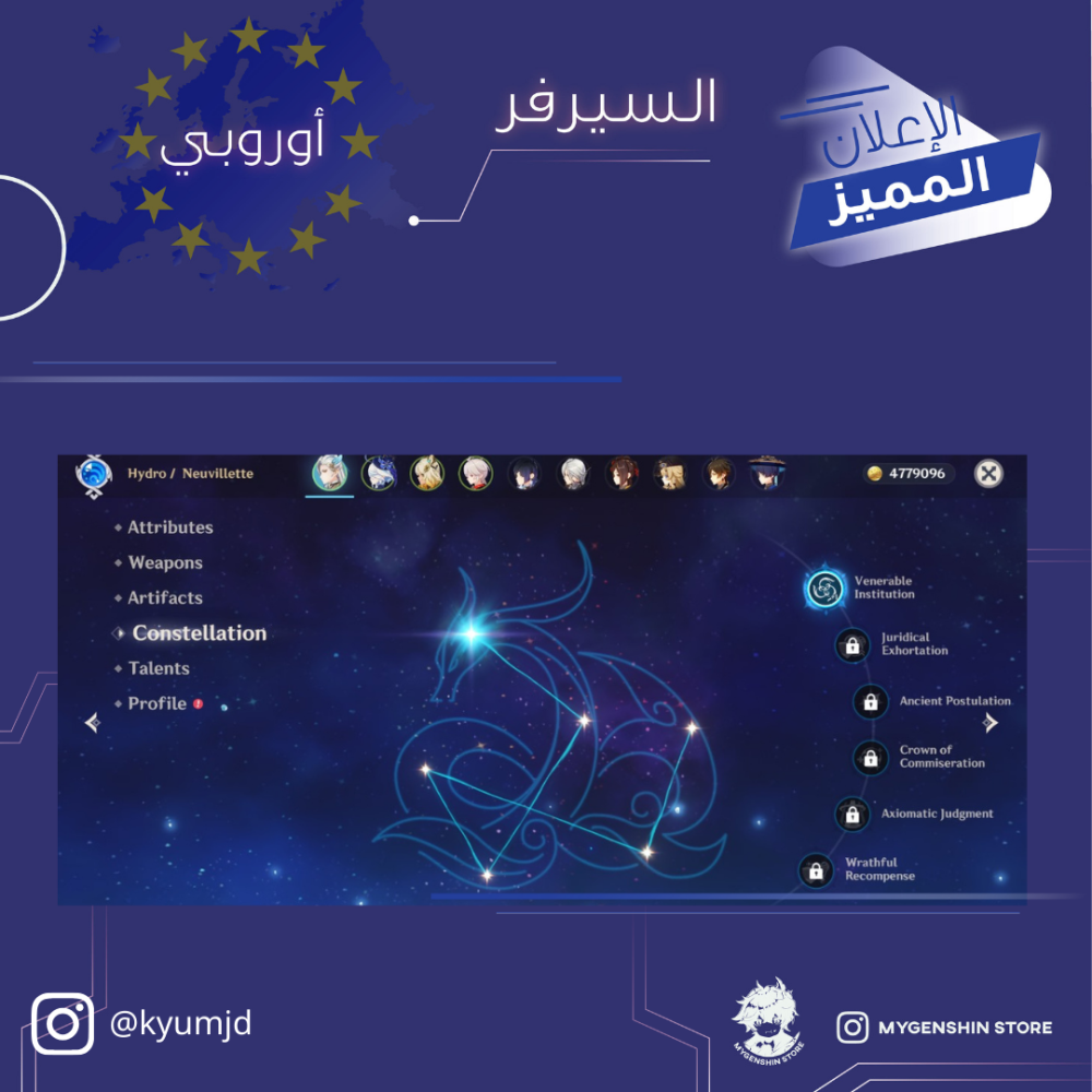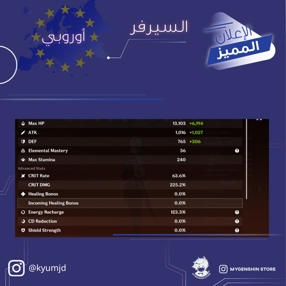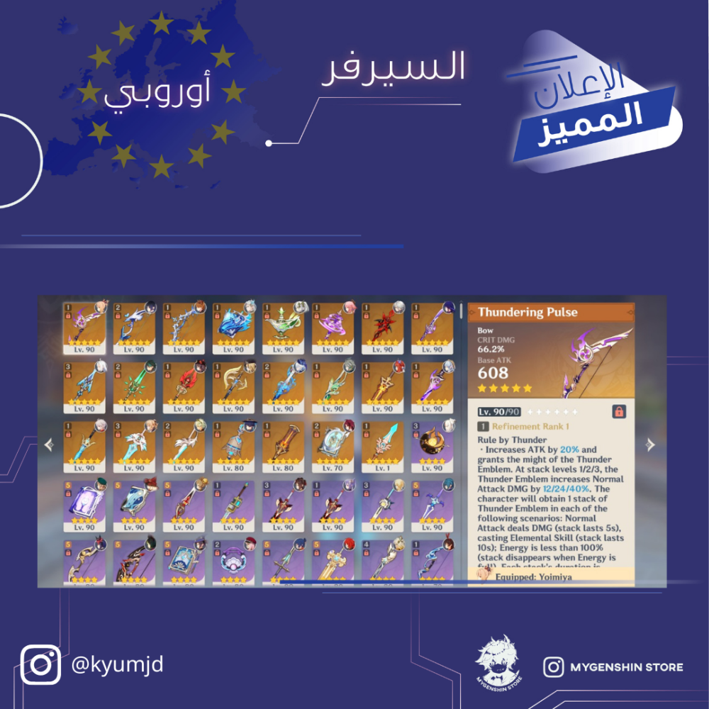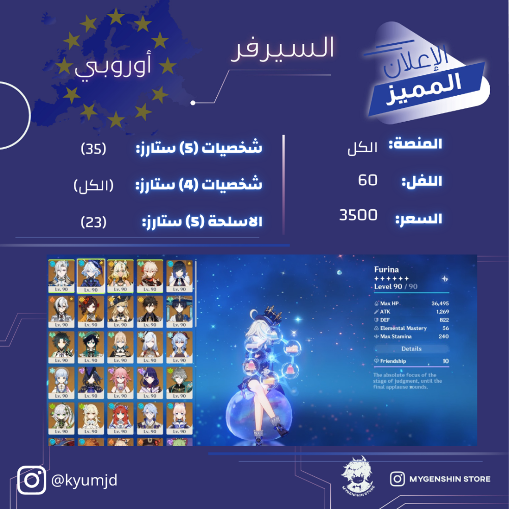 (kyumjd) حساب سيرفر اوروبا لفل 60يحتوي(35 شخصية)