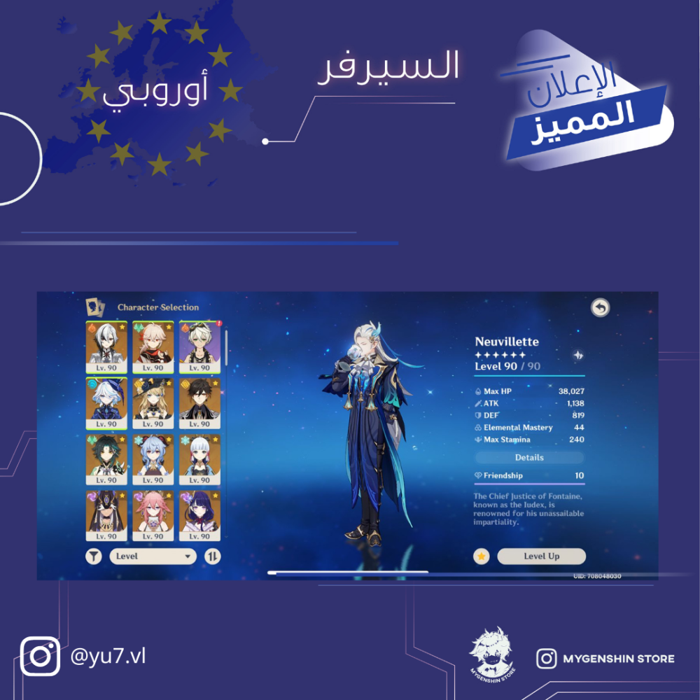 (yu7.vl) حساب سيرفر اوروبا لفل 60 يحتوي (25 شخصيه