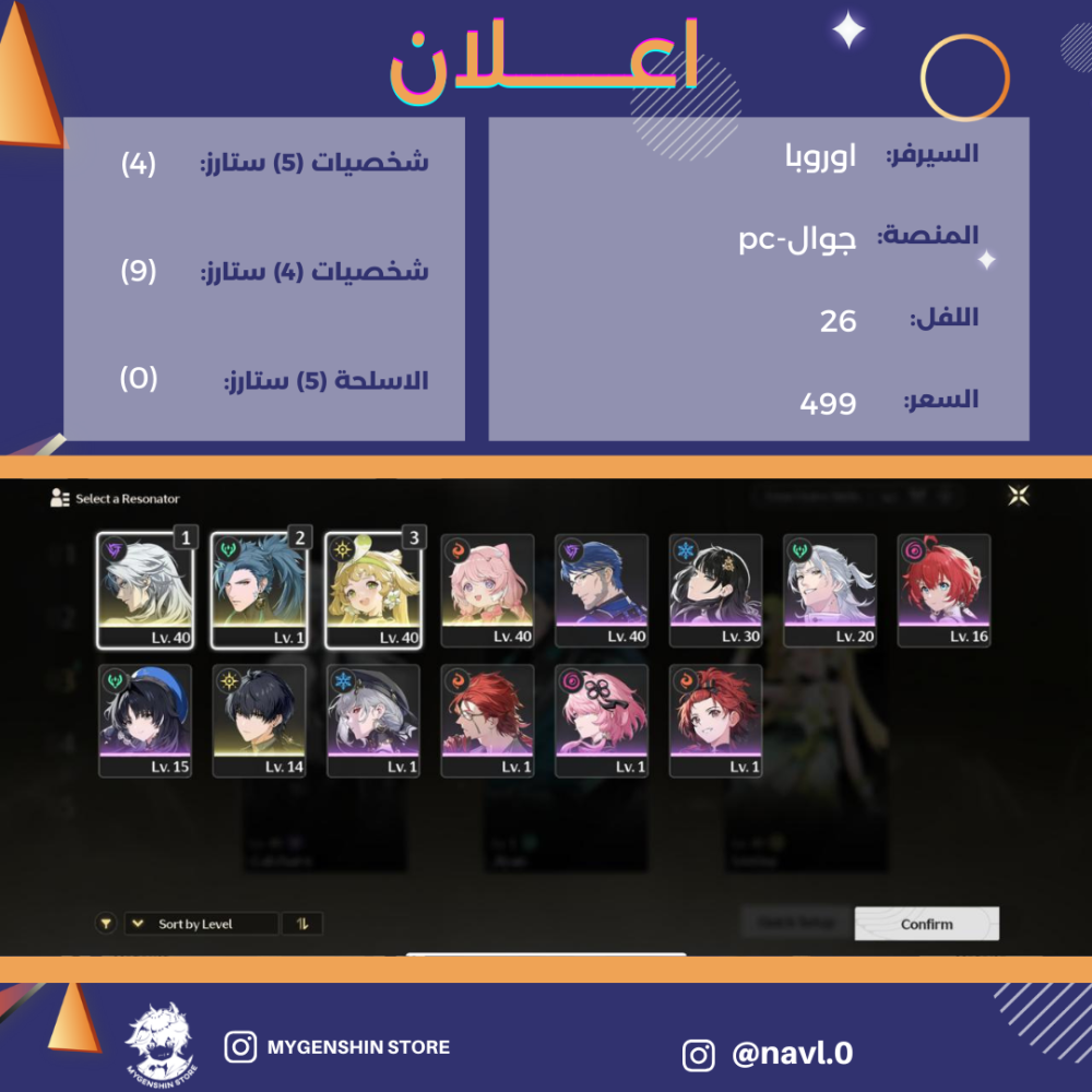 (navl.0) حساب سيرفر اوروبا لفل 26 يحتوي (4 شخصيه