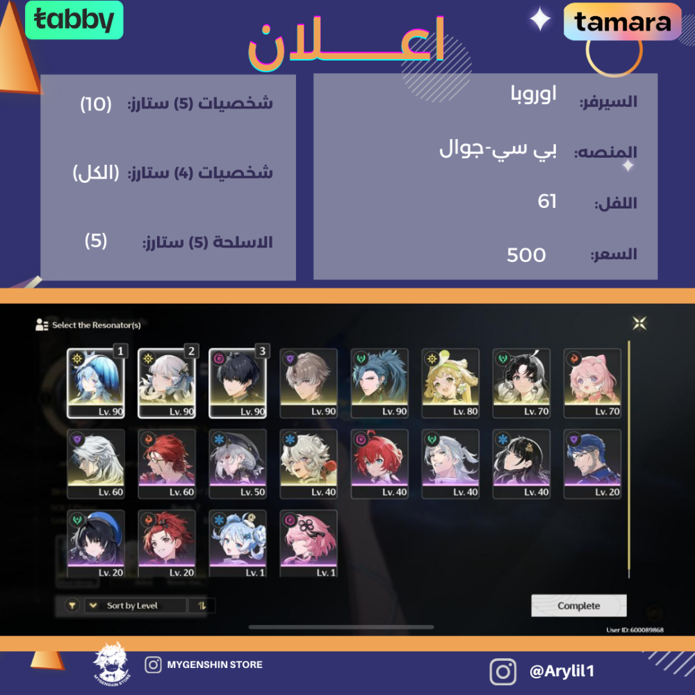 (Arylil1) حساب سيرفر اوروبا لفل 61 يحتوي (10 شخصيه)