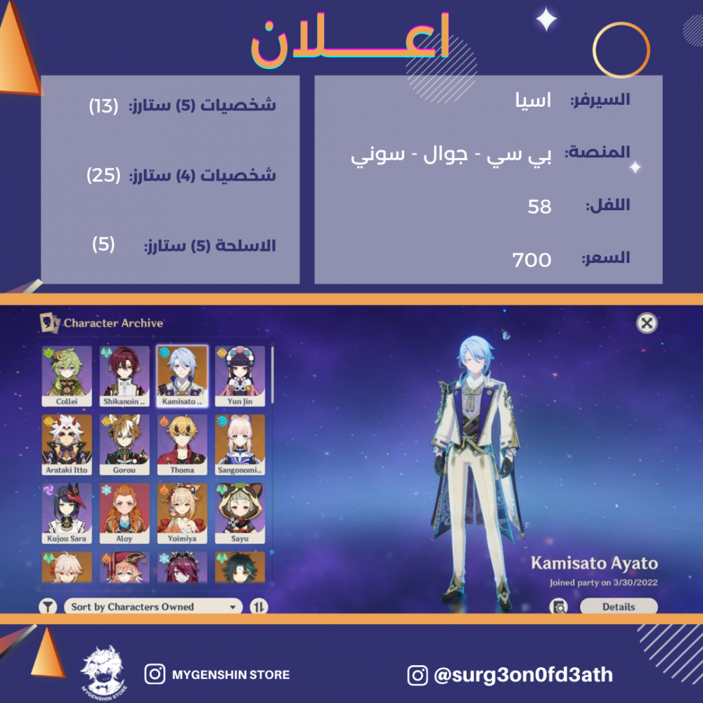 (surg3on0fd3ath) حساب سيرفر اسيا لفل 58 يحتوي (13 شخصيه)