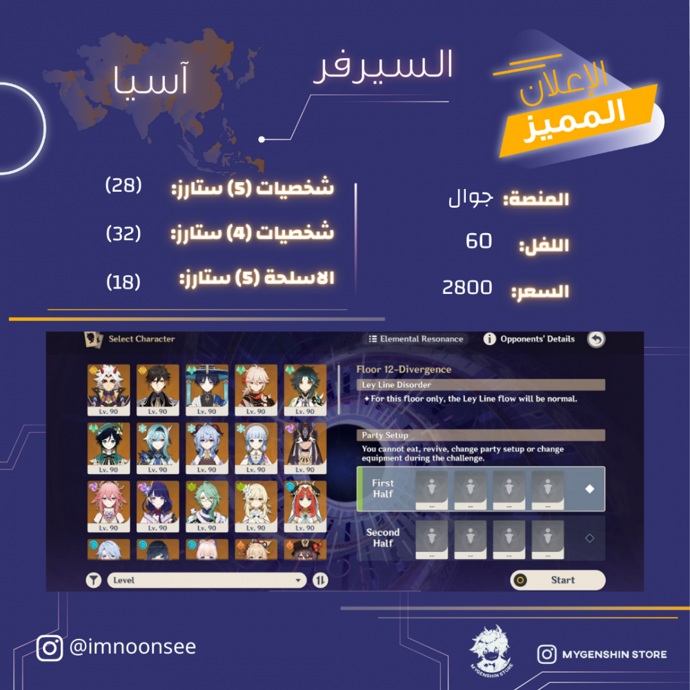 (imnoonsee) حساب سيرفر اسيا لفل 60 يحتوي(28 شخصية)
