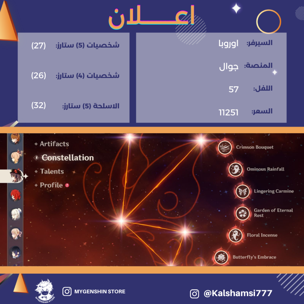 (Kalshamsi777) حساب سيرفر اوروبا لفل 57يحتوي(27 شخصية)