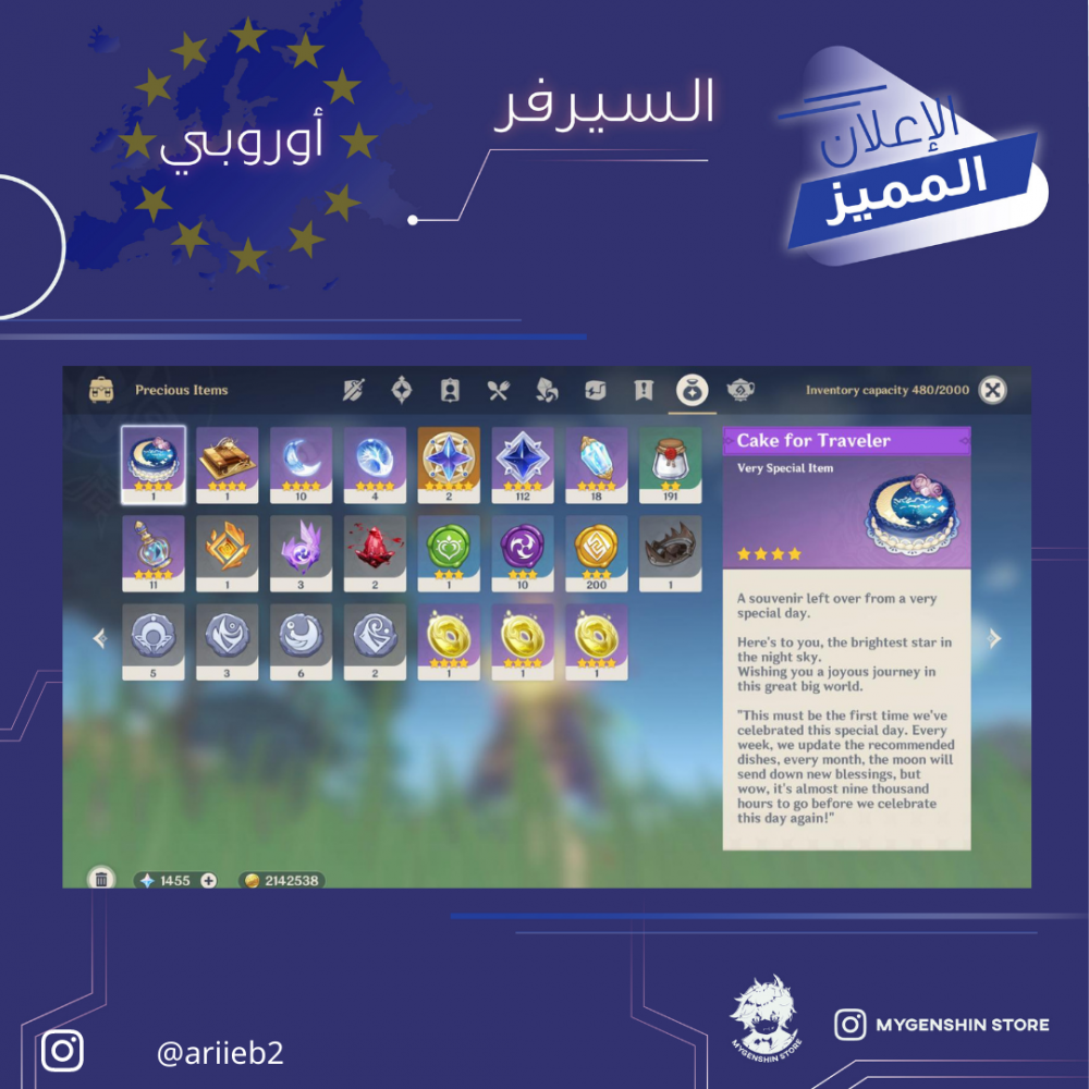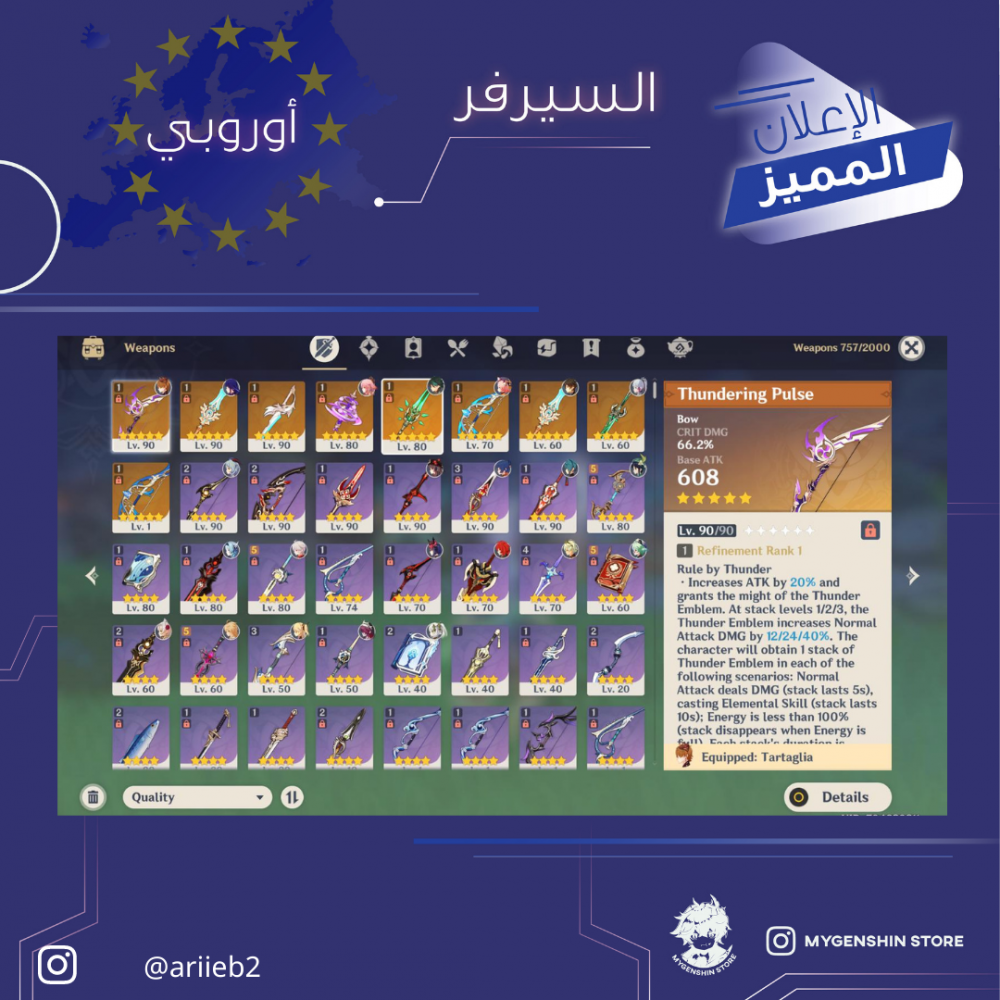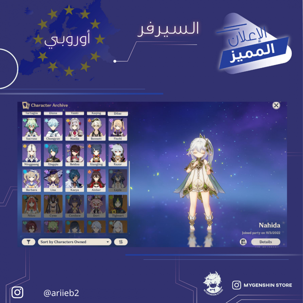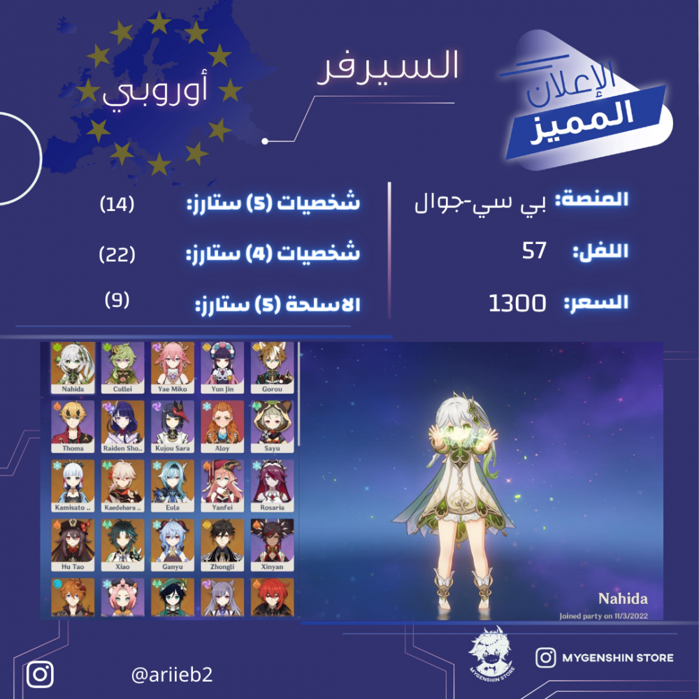 (ariieb2) حساب سيرفر اوروبا لفل 57 يحتوي(14 شخصيه)
