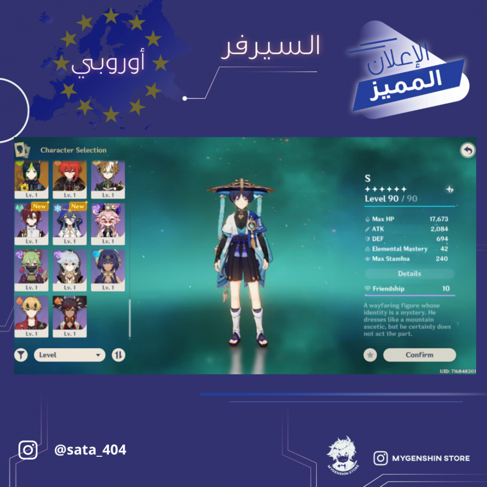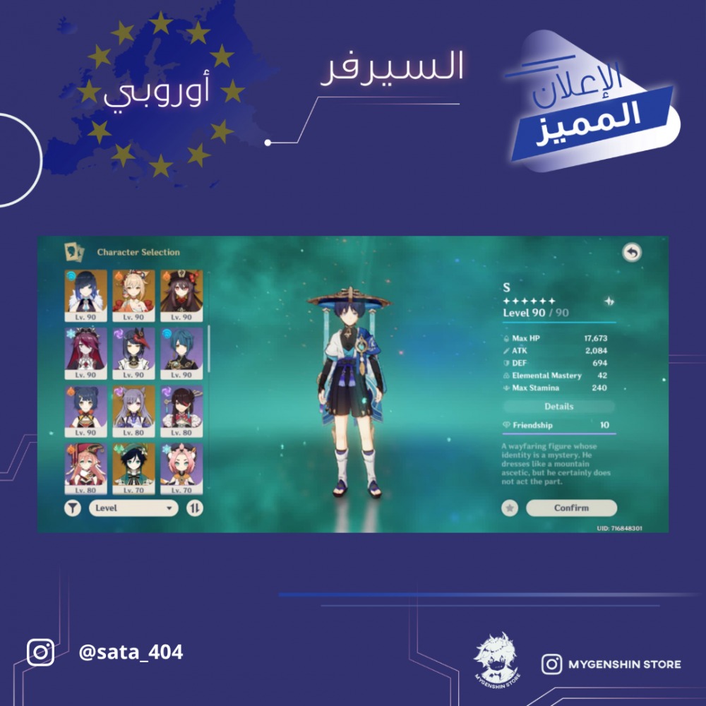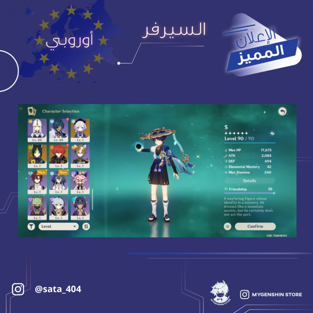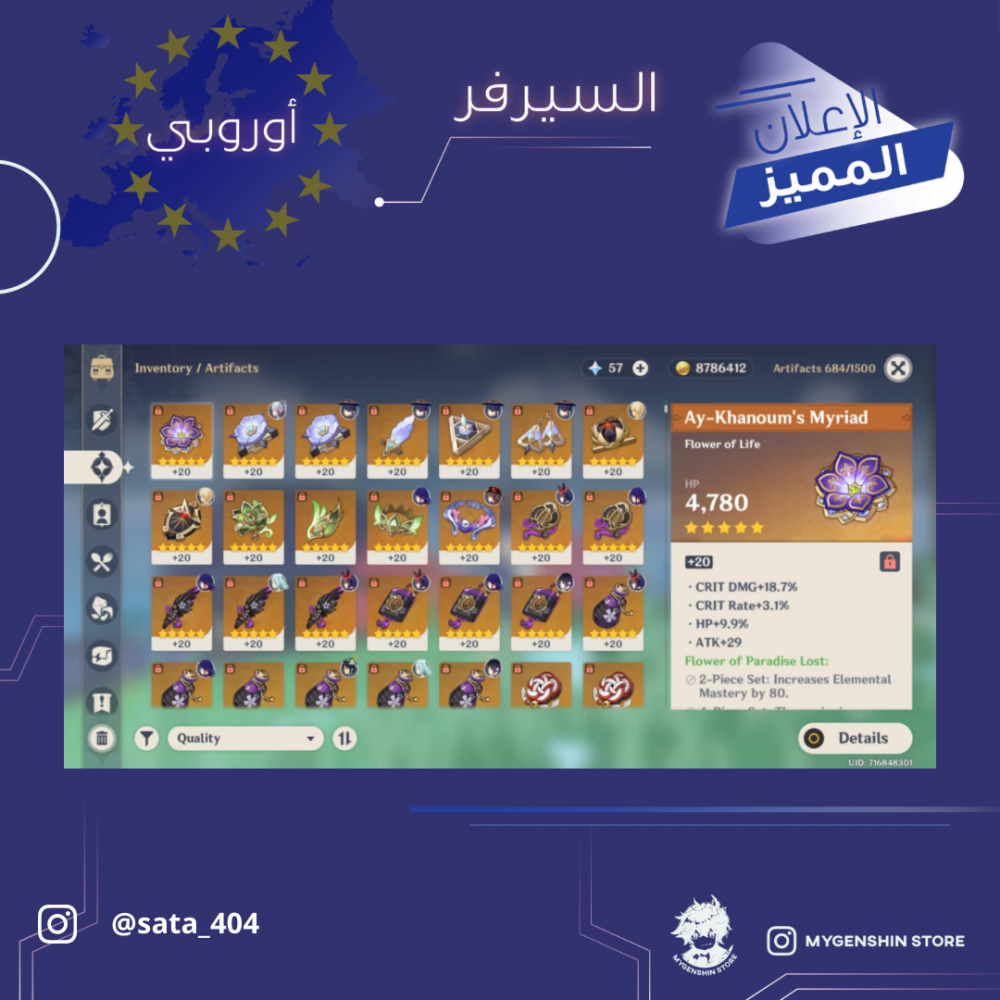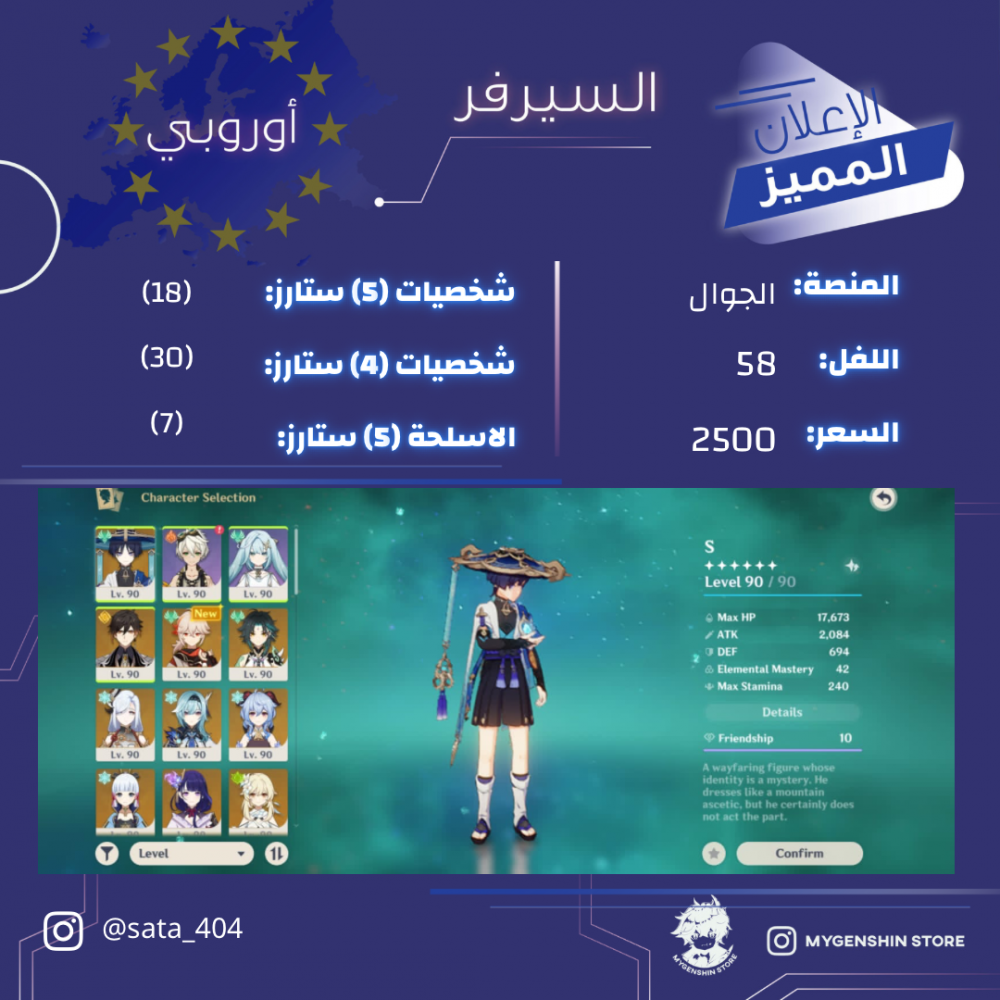 حساب سيرفر اوروبي لفل 58يحتوي (18 شخصية)