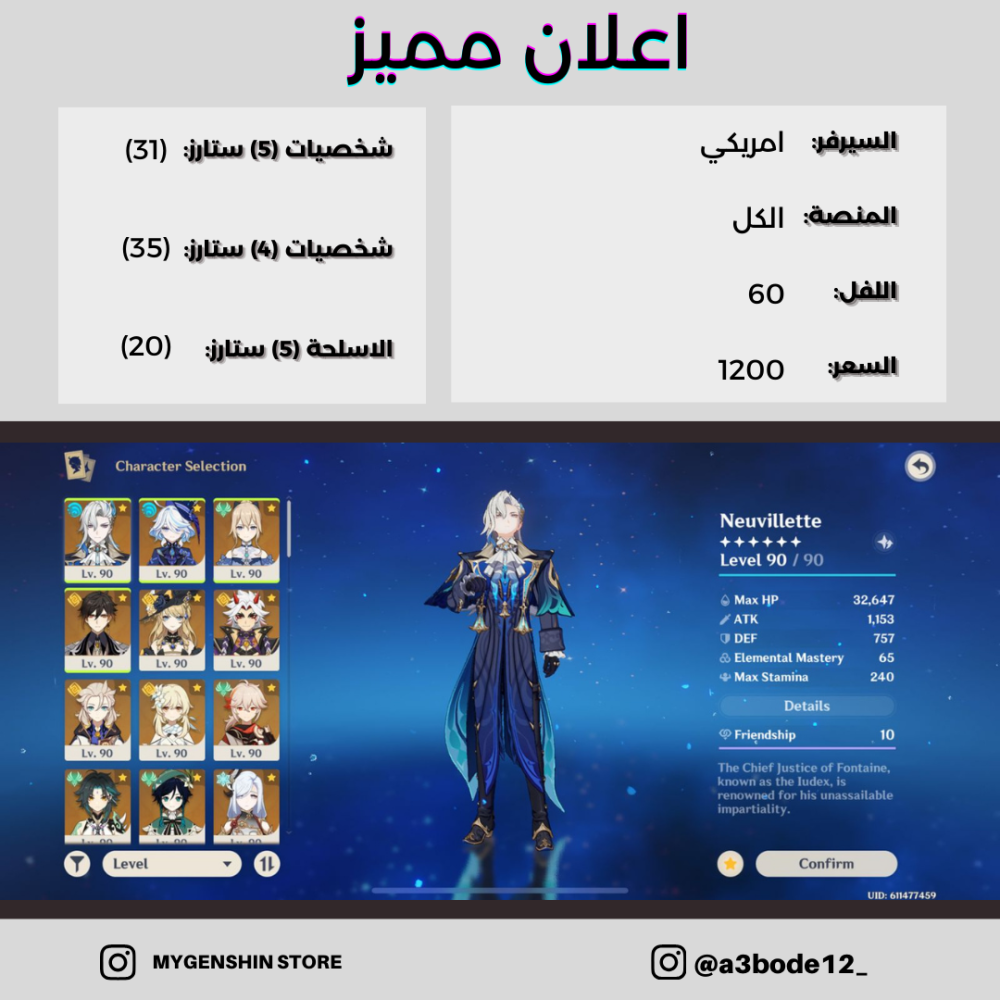 (a3bode12_) حساب سيرفر امريكي لفل 60 يحتوي (31 شخصيه