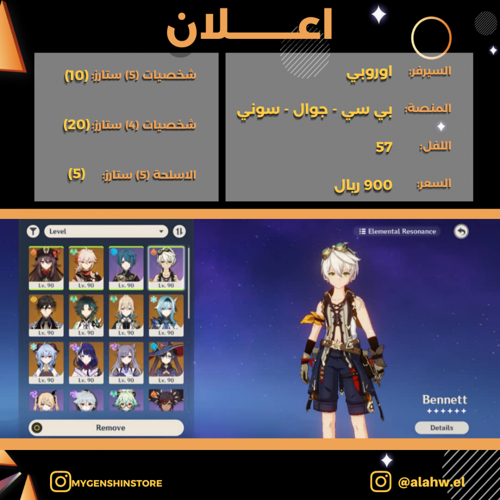 (alahw.el)حساب سيرفر اوروبا لفل 57 يحتوي(10 شخصيه)