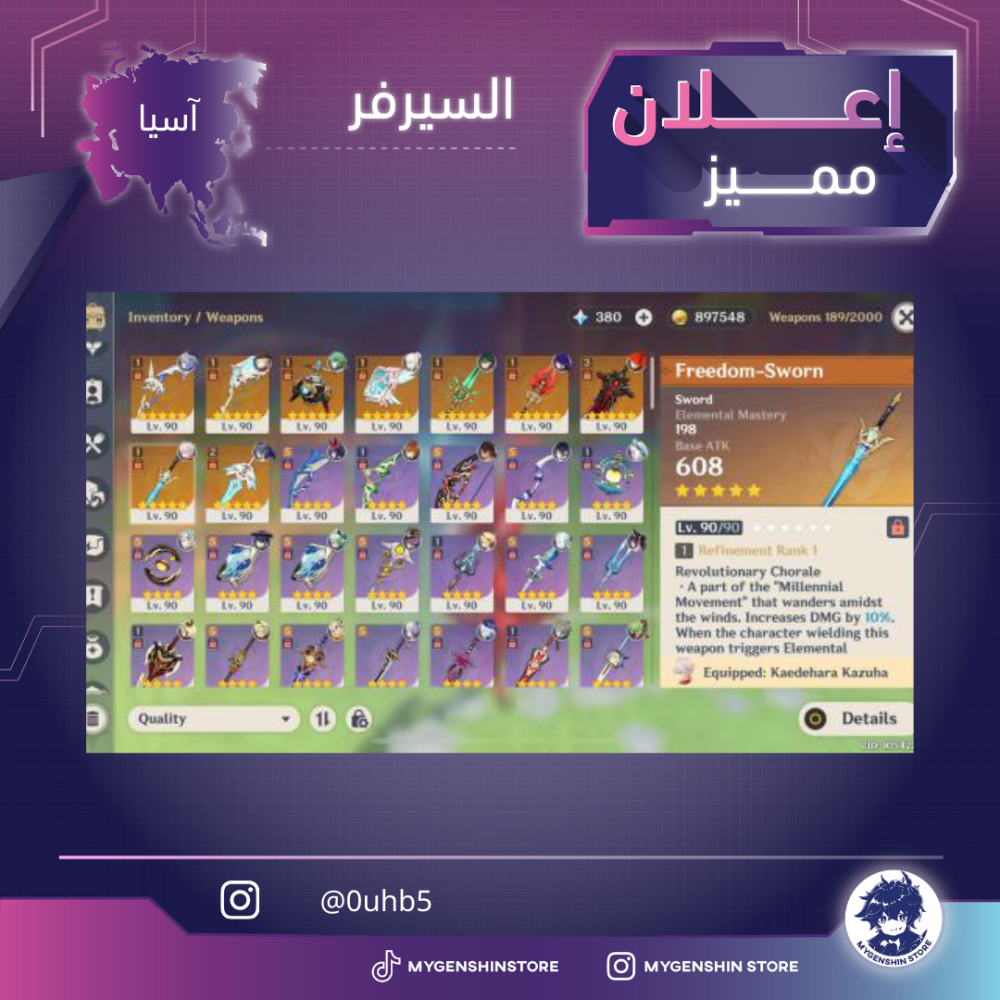 (0uhb5) حساب سيرفر اسيا لفل 60 يحتوي (33 شخصية)