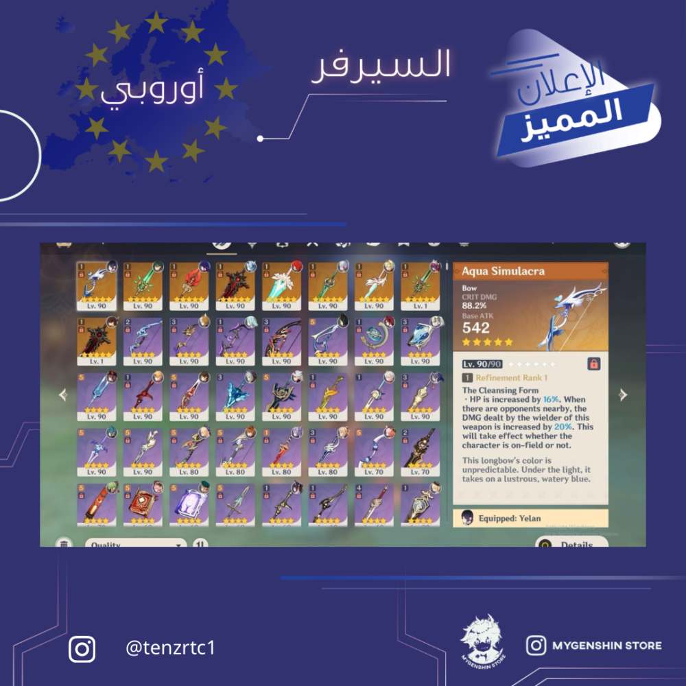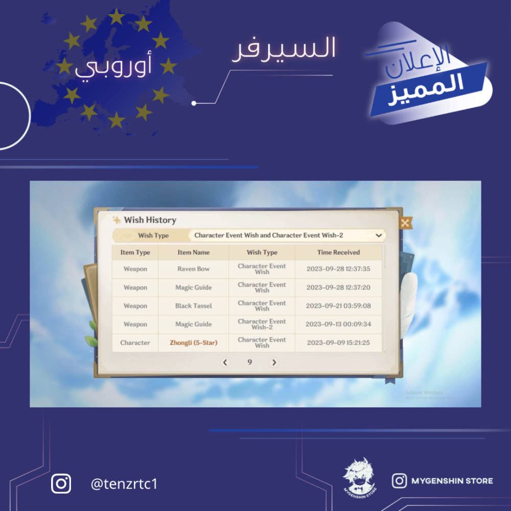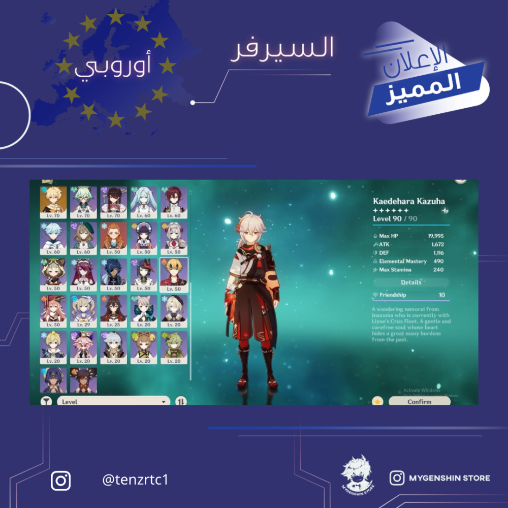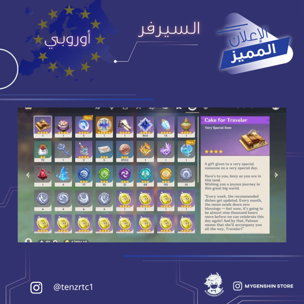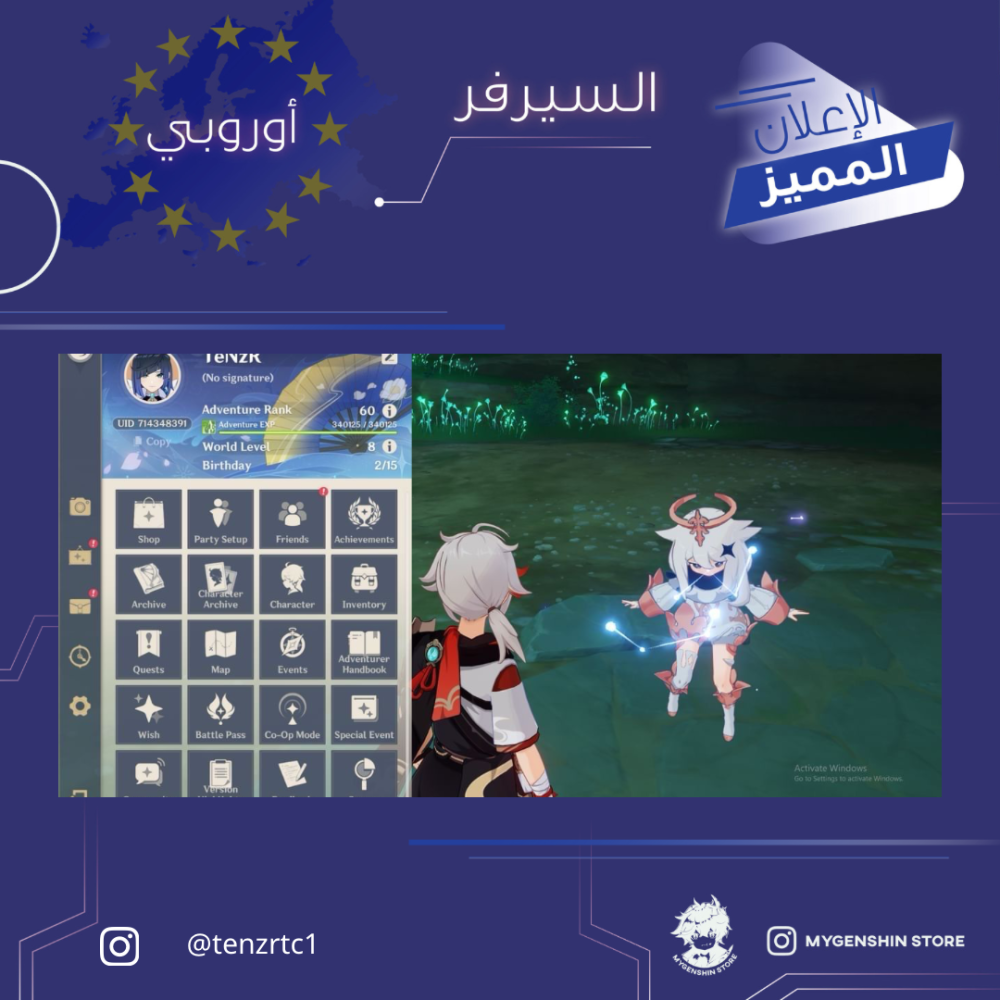(tenzrtc1) حساب سيرفر اوروبا لفل 60 يحتوي (17 شخصية)