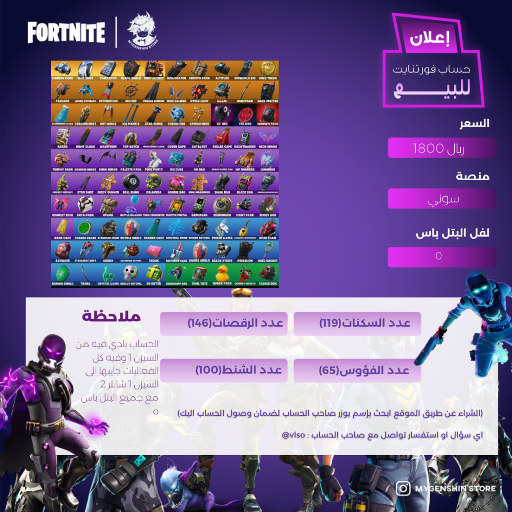 (vlso) حساب فورت نايت يحتوي على119 سكن