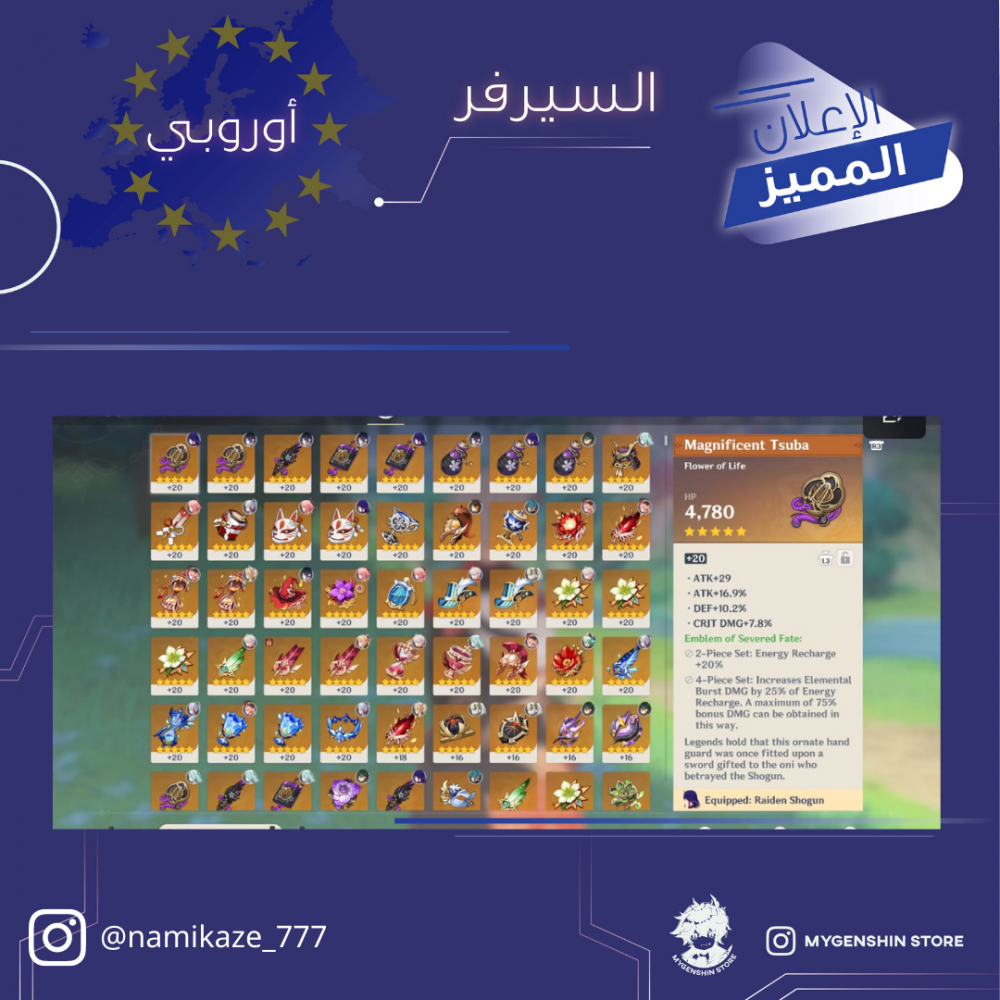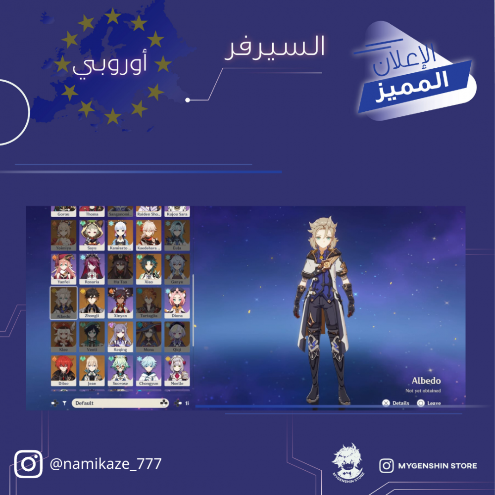 (namikaze_777) حساب سيرفر اوروبا لفل 57يحتوي(14 شخصية)