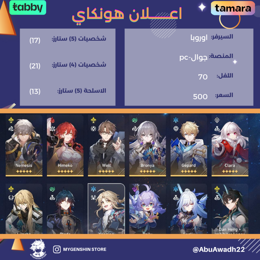 (AbuAwadh22) حساب سيرفر اوروبا لفل 70يحتوي(17 شخصية)