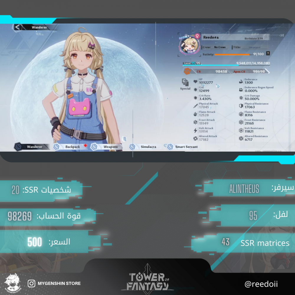(reedoii) حساب سيرفر اوروبي- Alinthues لفل 95يحتوي (20شخصيات)