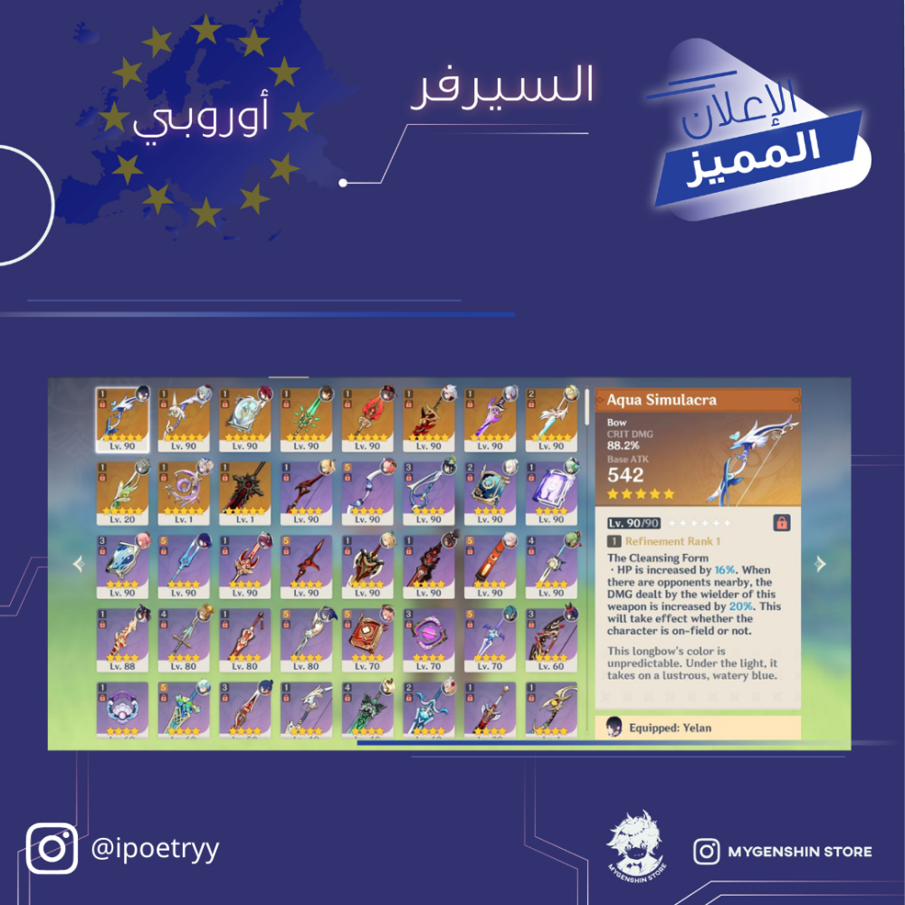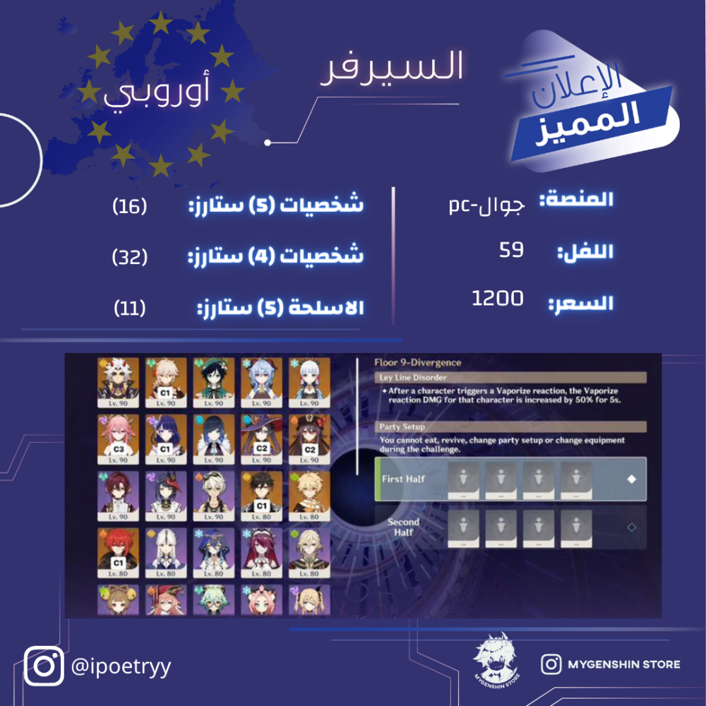 (ipoetryy) حساب سيرفر اوروبا لفل 59 يحتوي (16 شخصيه
