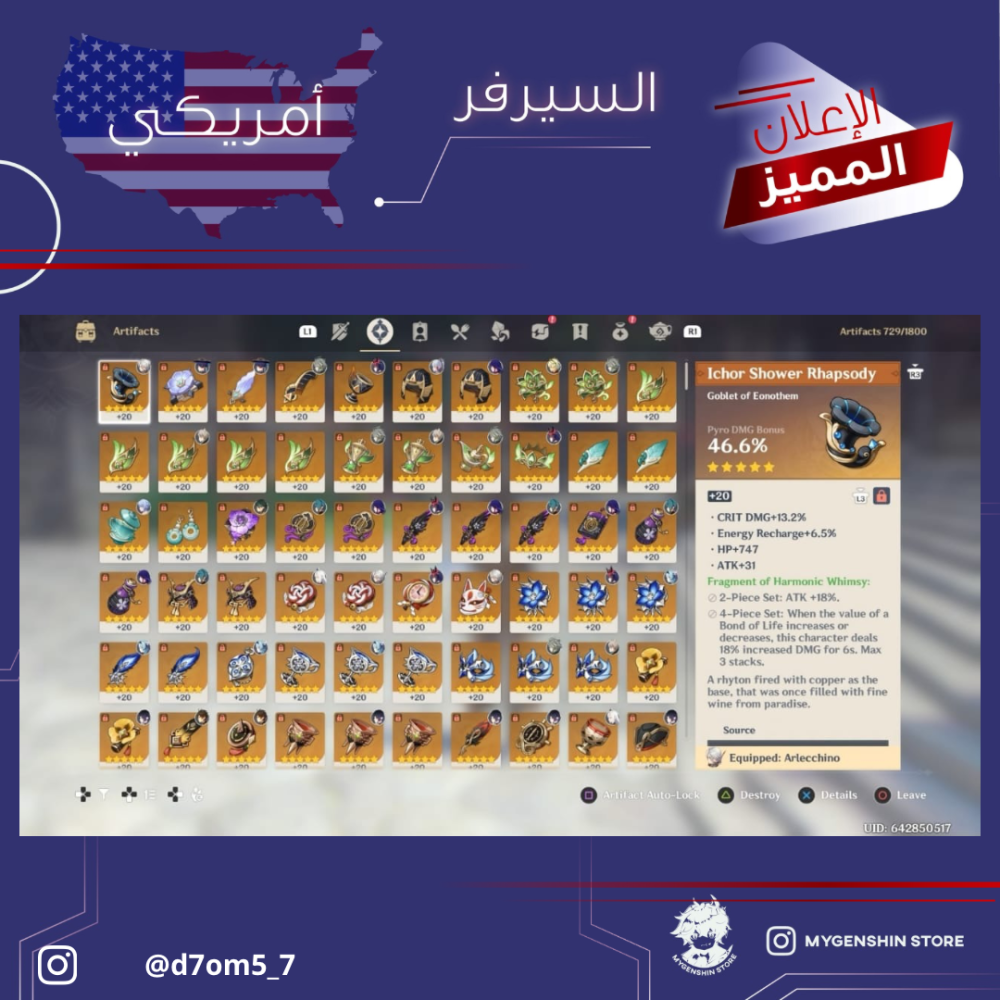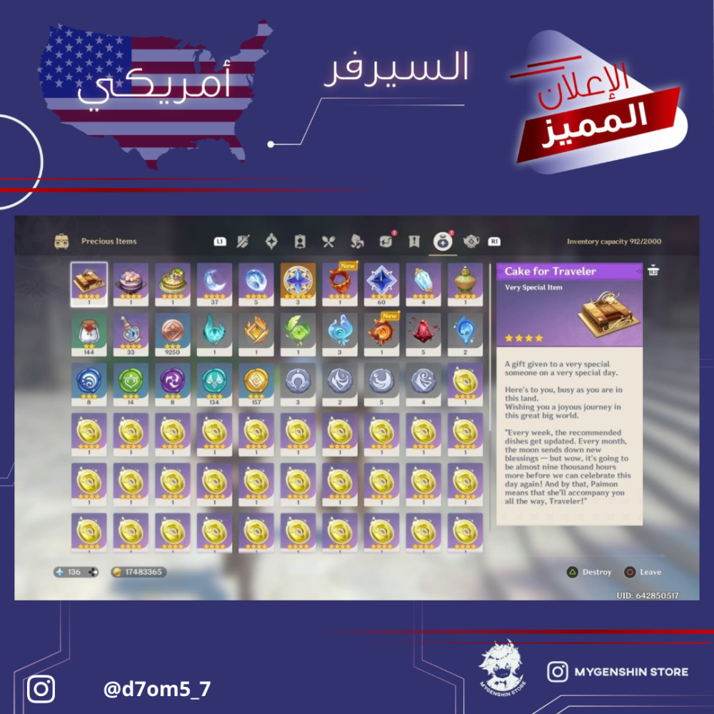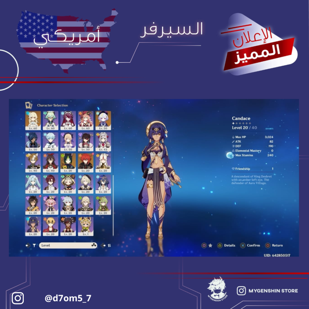 (d7om5_7) حساب سيرفر امريكي لفل 58 يحتوي (21 شخصيه)
