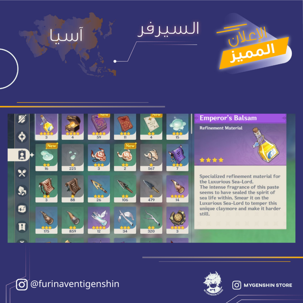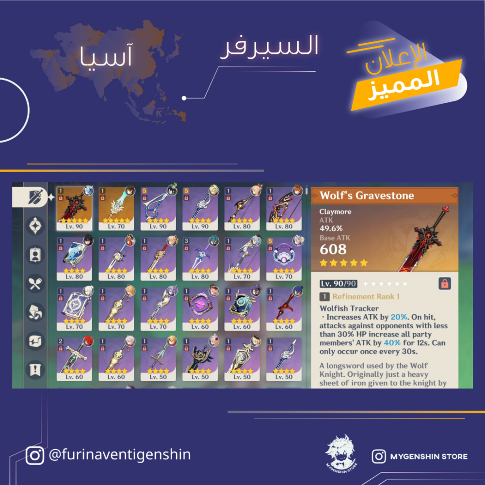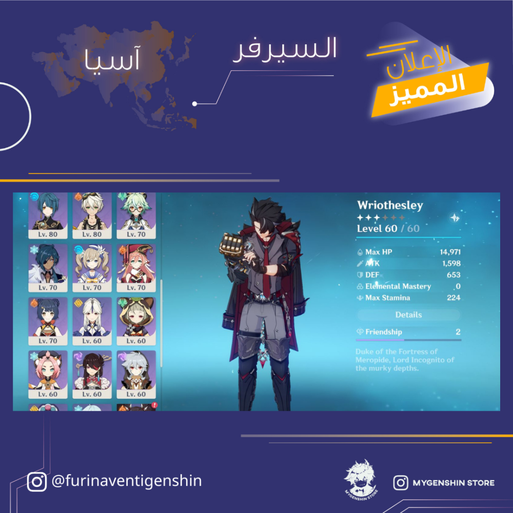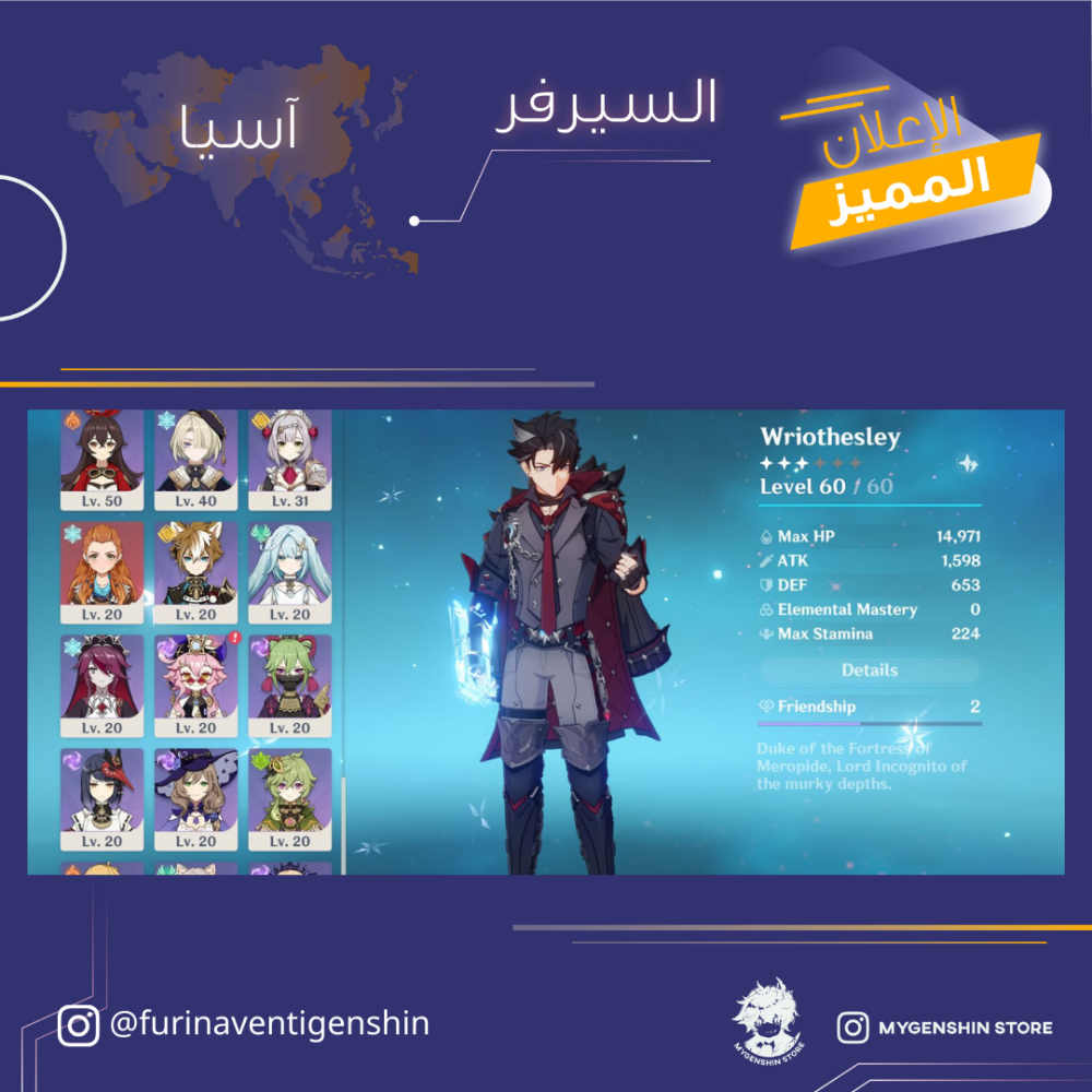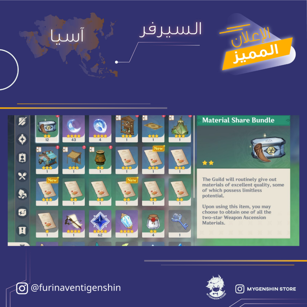 (furinaventigenshin) حساب سيرفر اسيا لفل 58 يحتوي (14 شخصيه