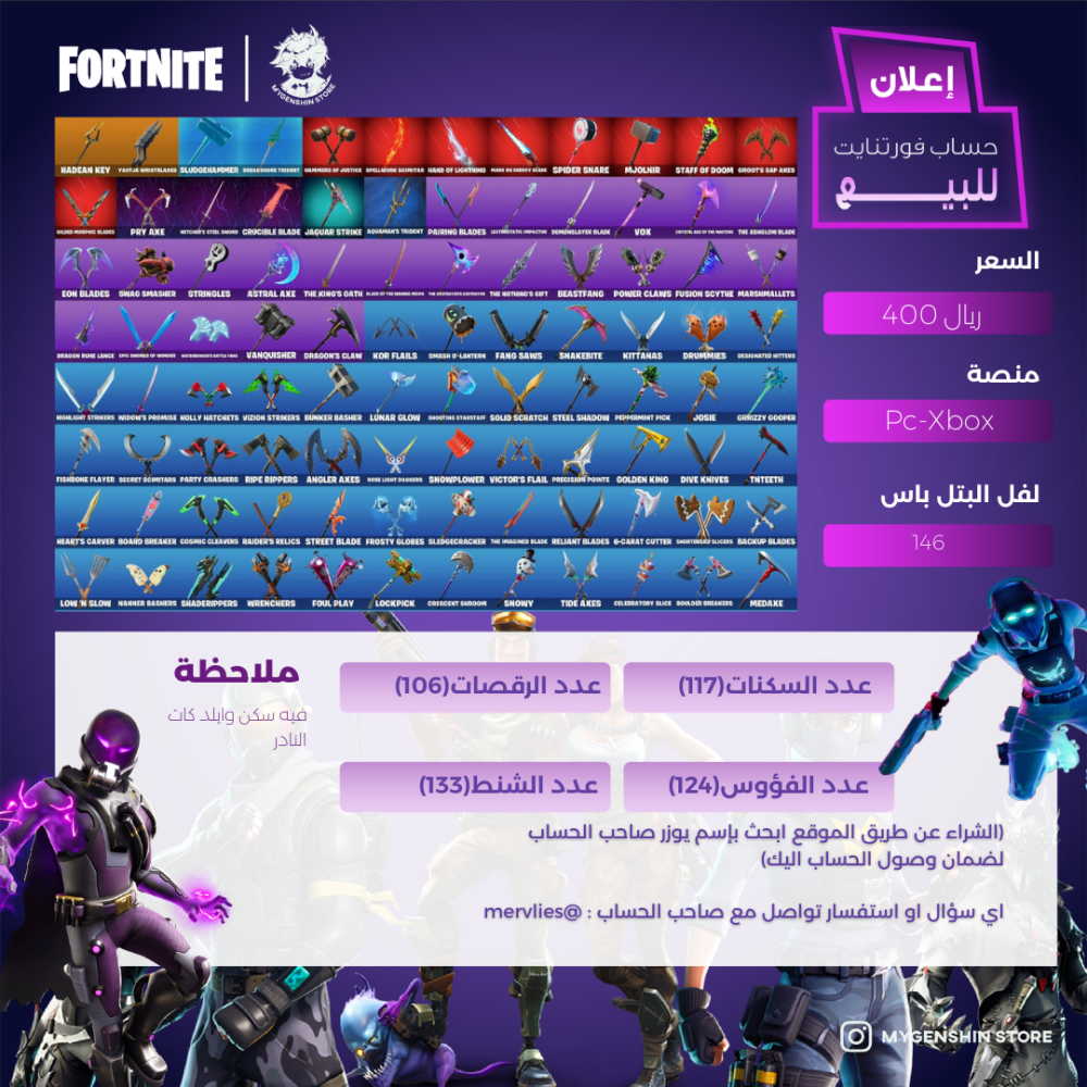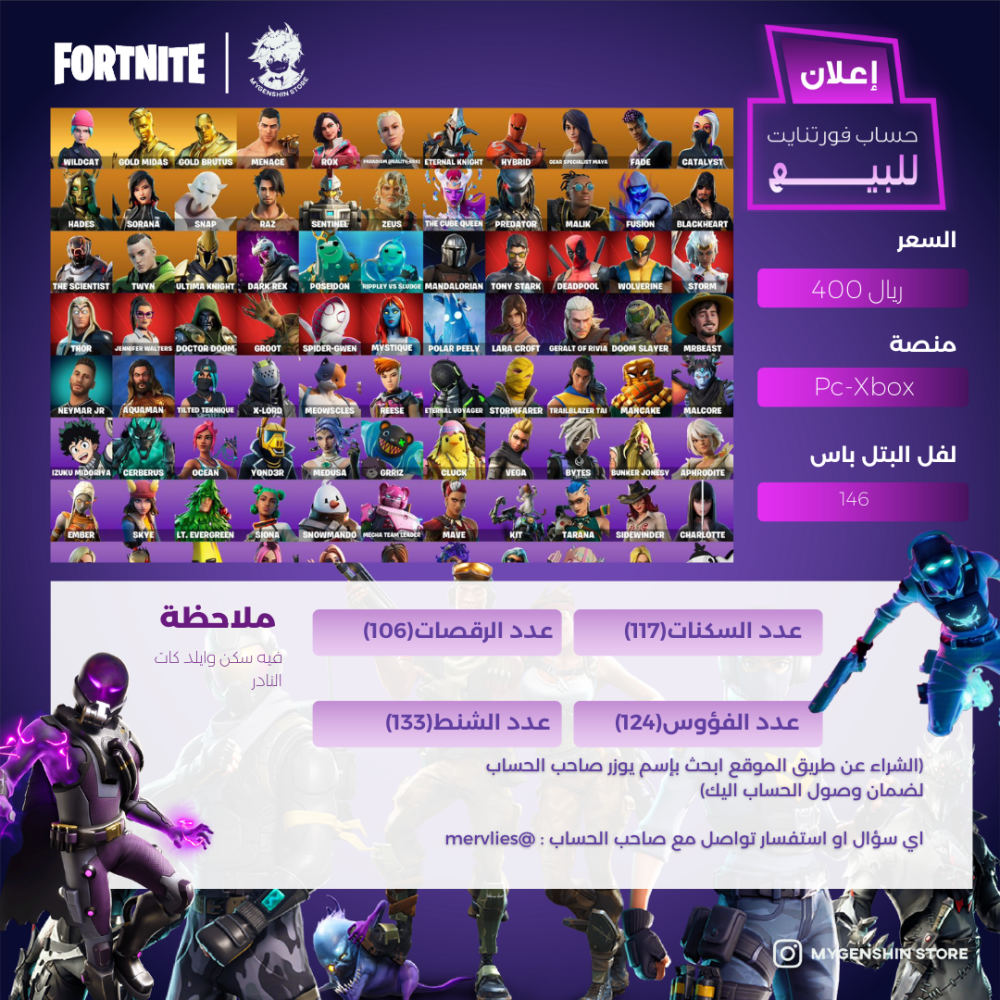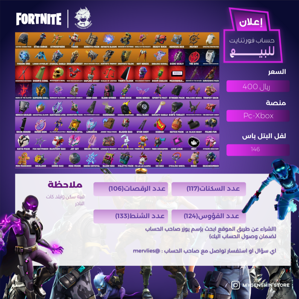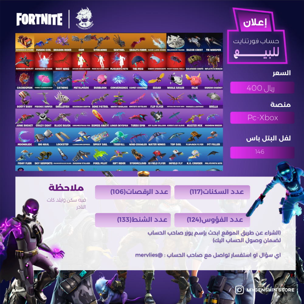(mervlies)حساب فورت نايت يحتوي على(117) سكن