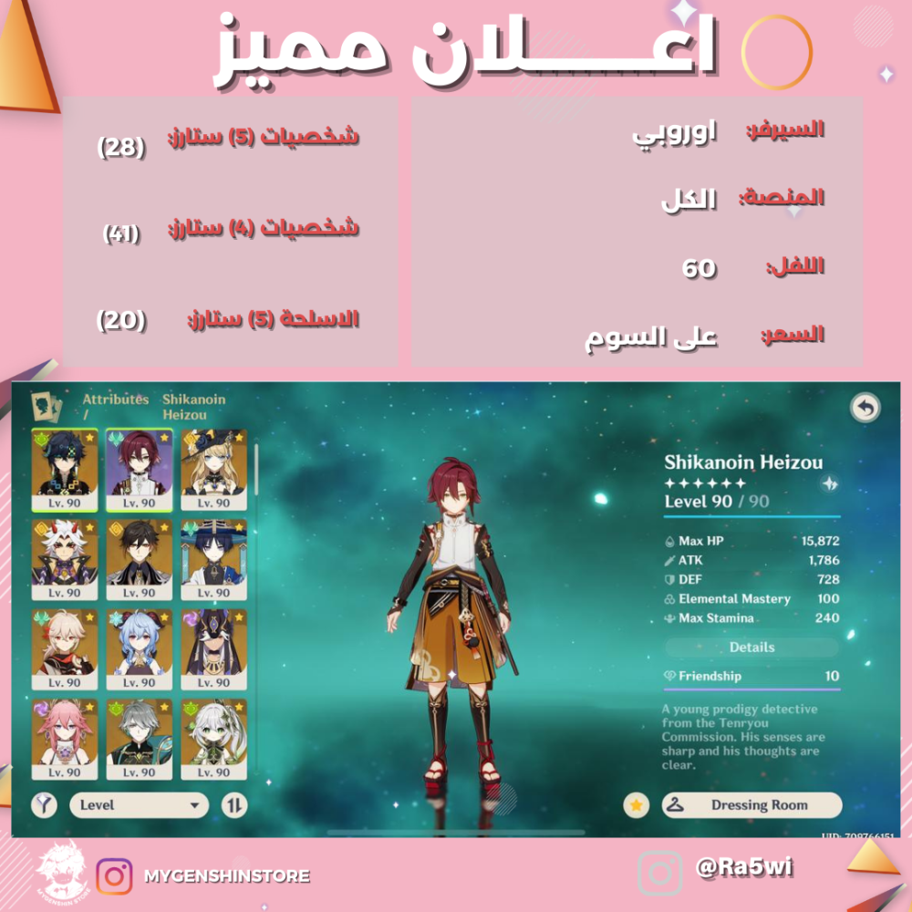 (Ra5wi) حساب سيرفر اوروبا لفل 60 يحتوي(28 شخصية)