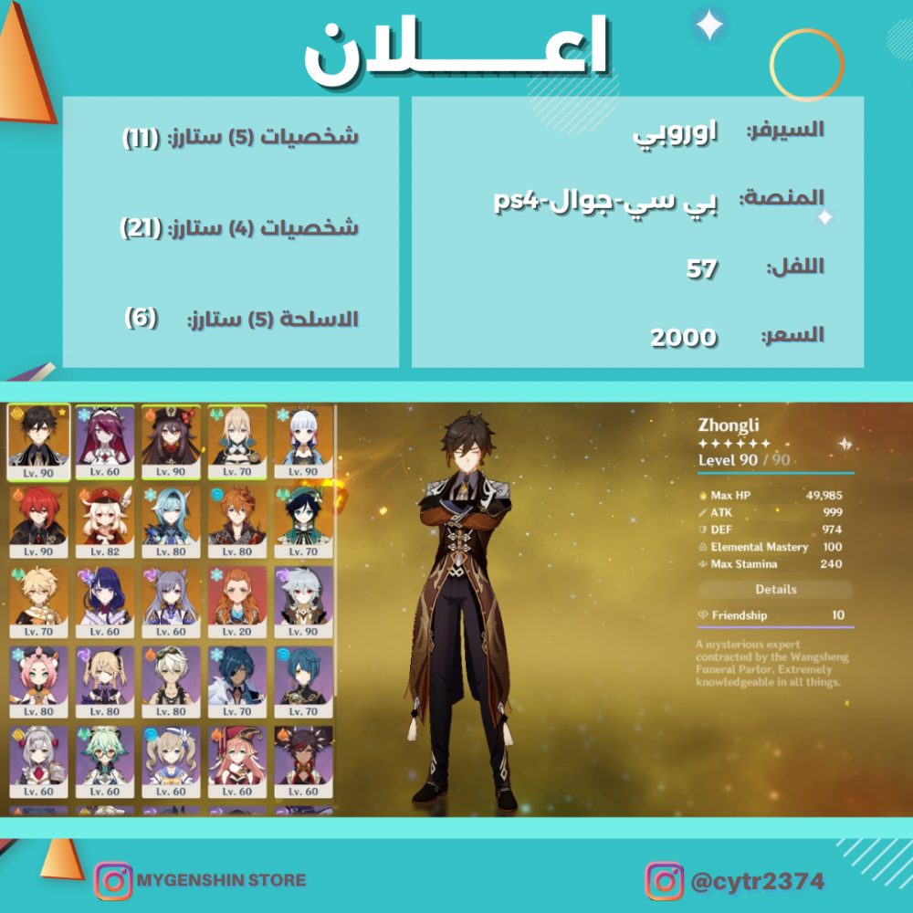 (اعلان)حساب سيرفر اوروبي لفل 57 يحتوي(11) شخصيات)