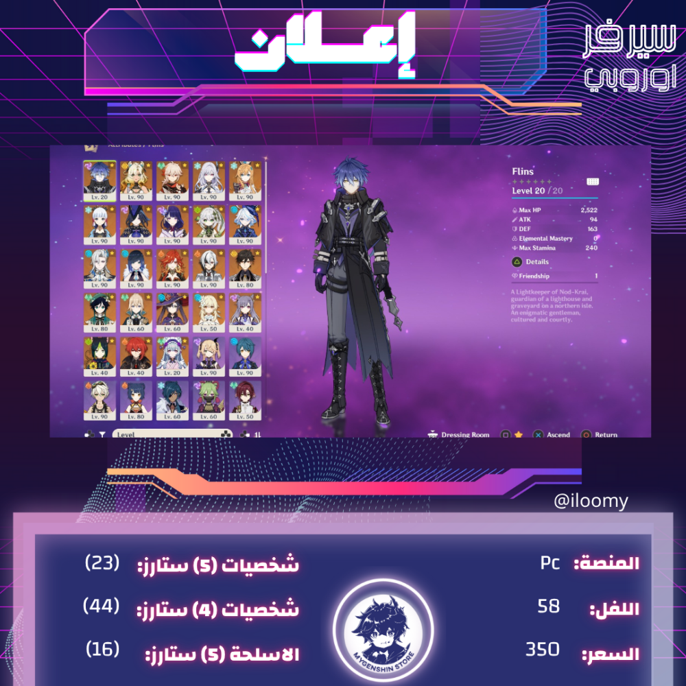 (iloomy) حساب سيرفر اوروبا لفل 58 يحتوي (23 شخصيه )