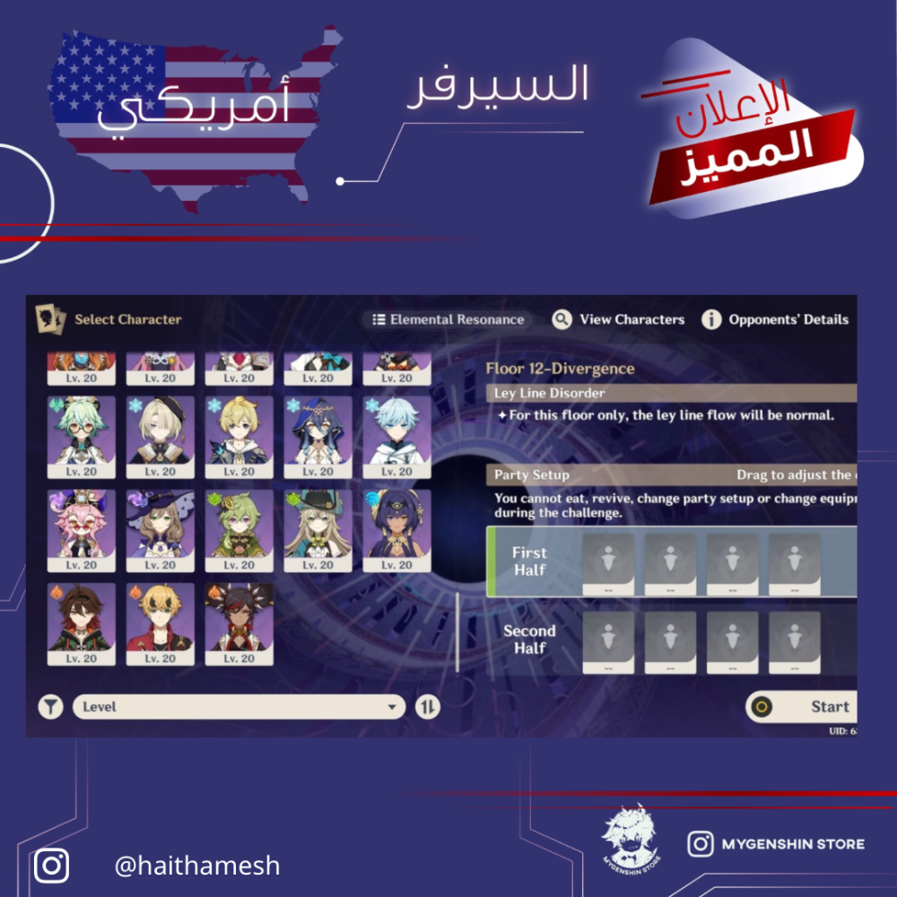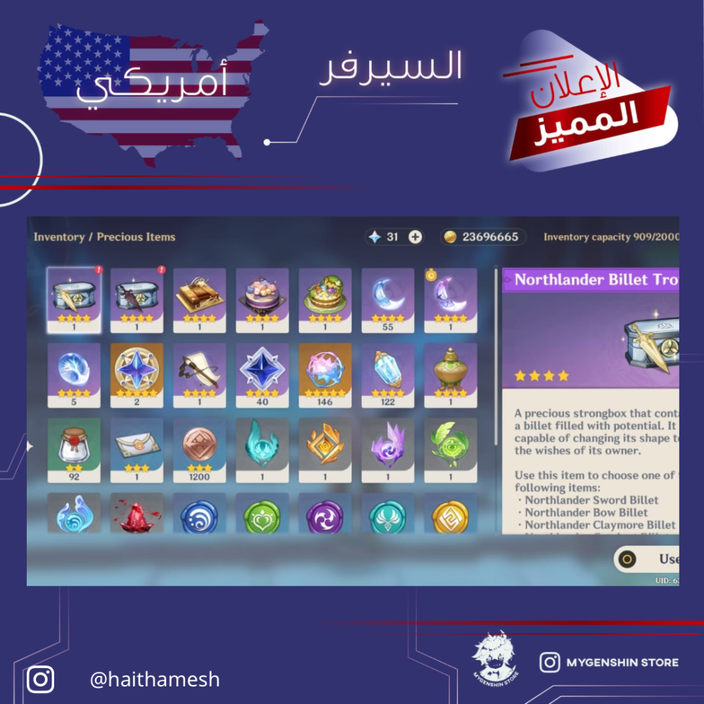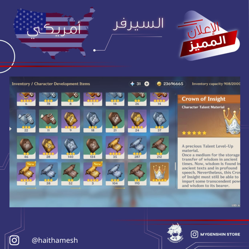 (haithamesh) حساب سيرفر امريكا لفل 60يحتوي ( 22 شخصية)