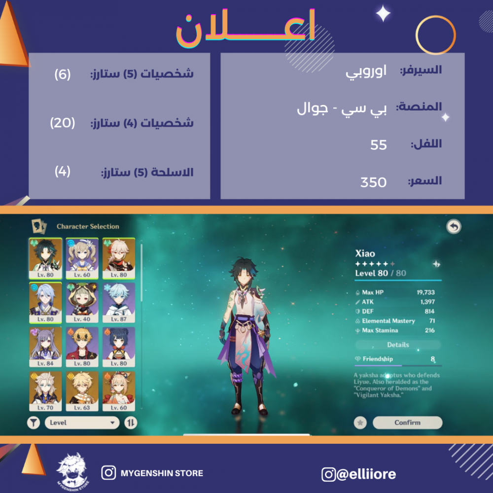 (elliiore) حساب سيرفر اوروبا لفل 55 يحتوي (6 شخصيات)