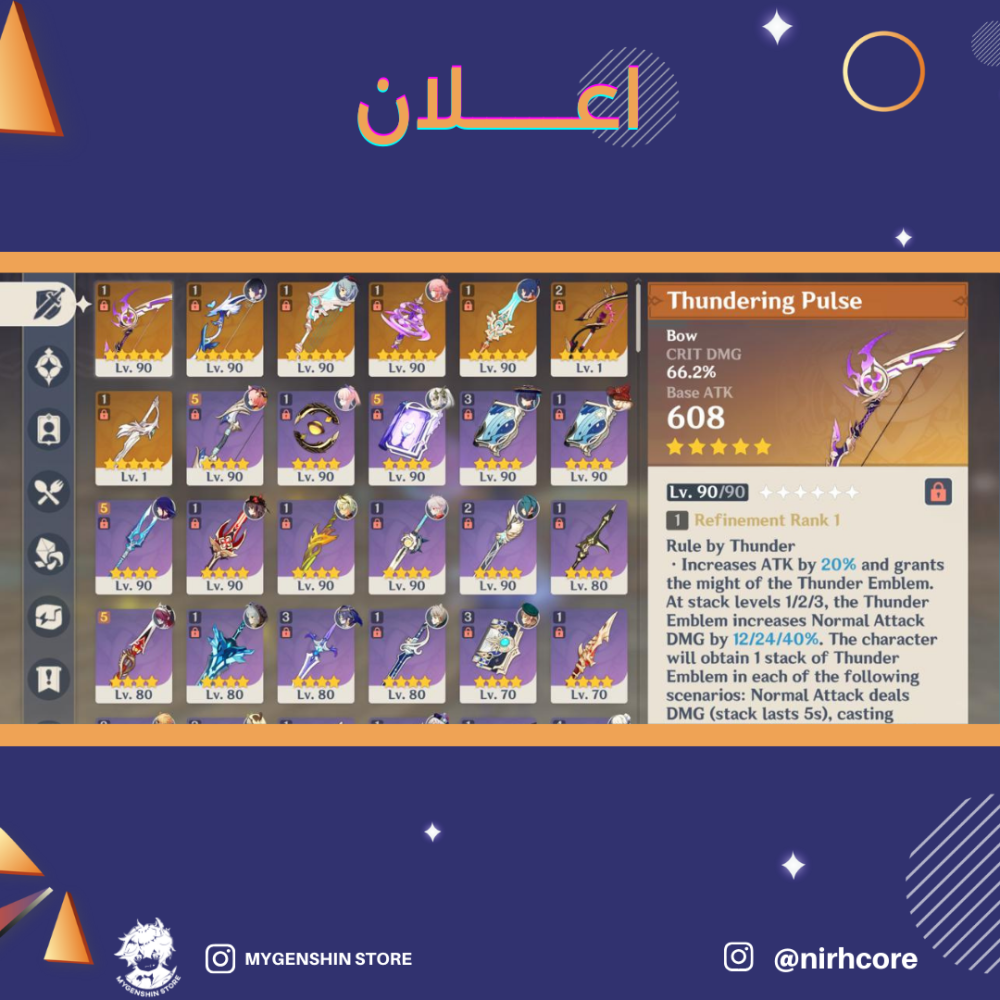 (nirhcore) حساب سيرفر اسيا لفل 58يحتوي(15 شخصية)