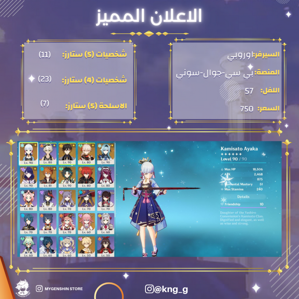 (kng_g) حساب سيرفر اوروبا لفل 57 يحتوي(11 شخصيه)