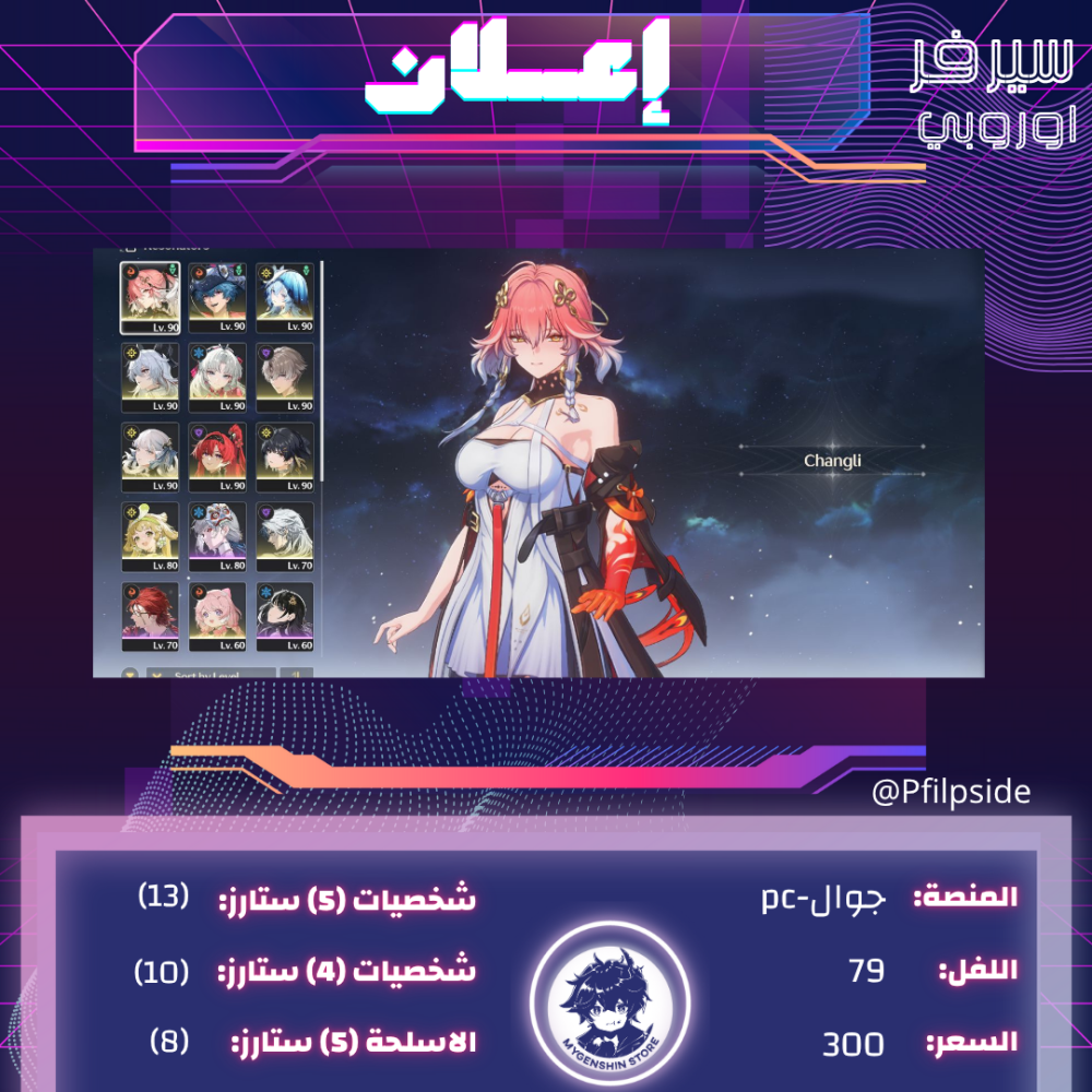 (Pfilpside) حساب سيرفر اوروبا لفل 79يحتوي(13 شخصية)