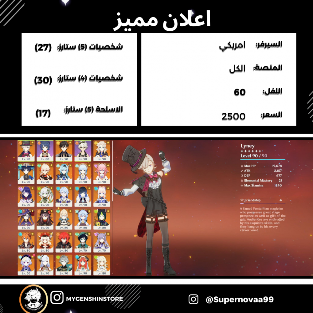 (Supernovaa99) حساب سيرفر امريكي لفل 60يحتوي(27 شخصية)