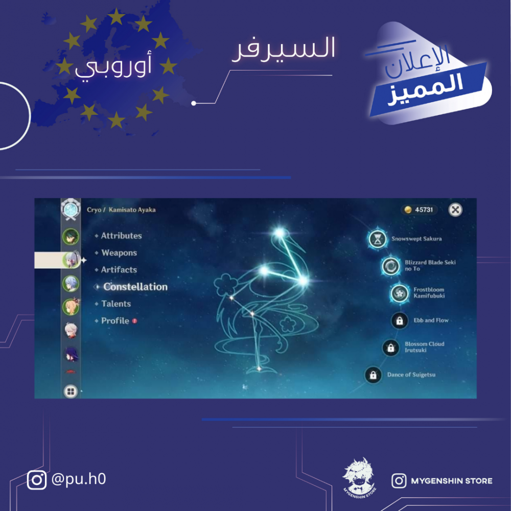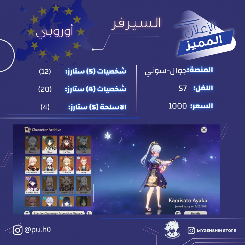 (pu.h0) حساب سيرفر اوروبا لفل 57 يحتوي (12 شخصيه)