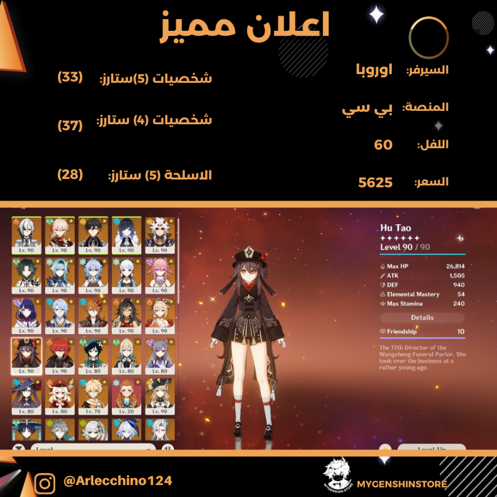 (Arlecchino124) حساب سيرفر اوروبا لفل 60 يحتوي (33 شخصيه