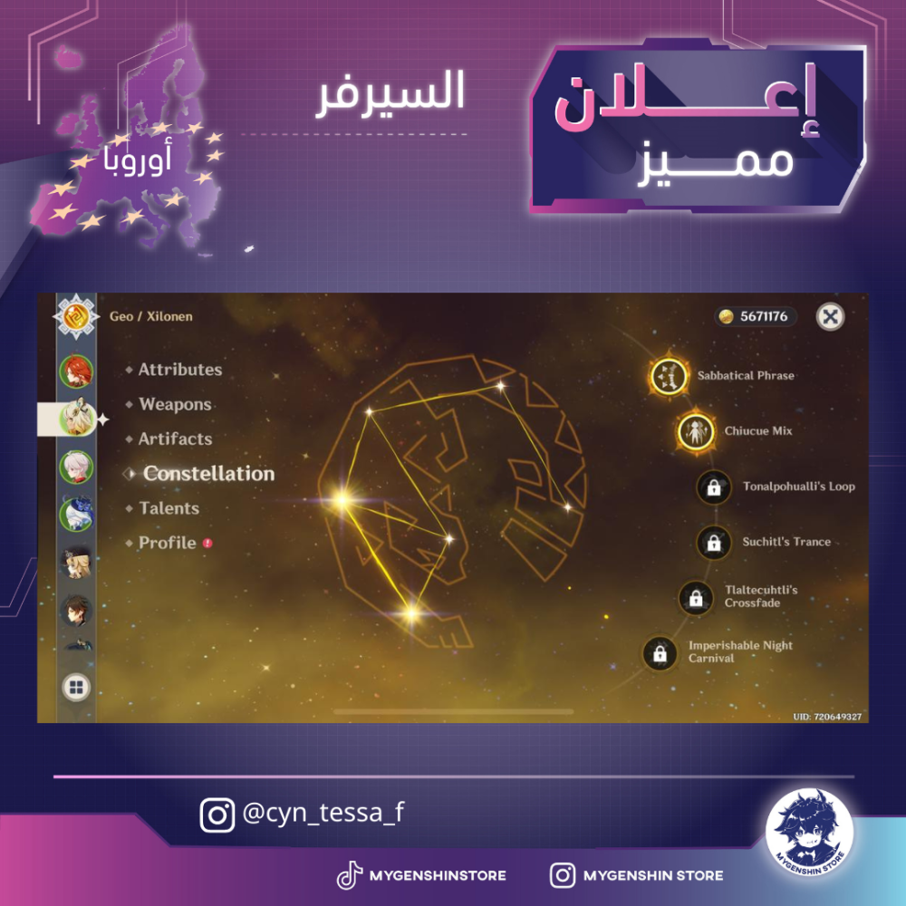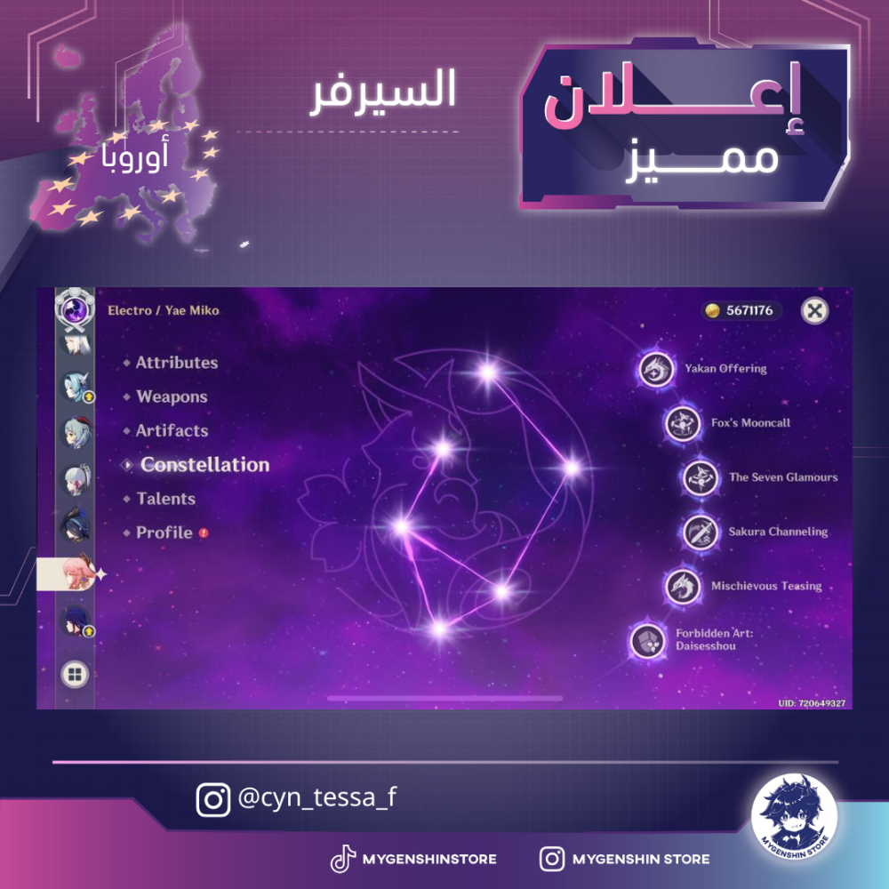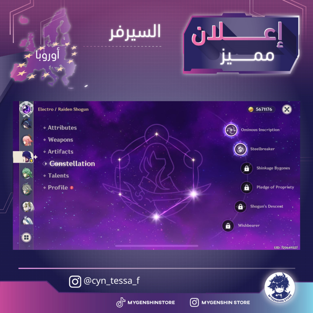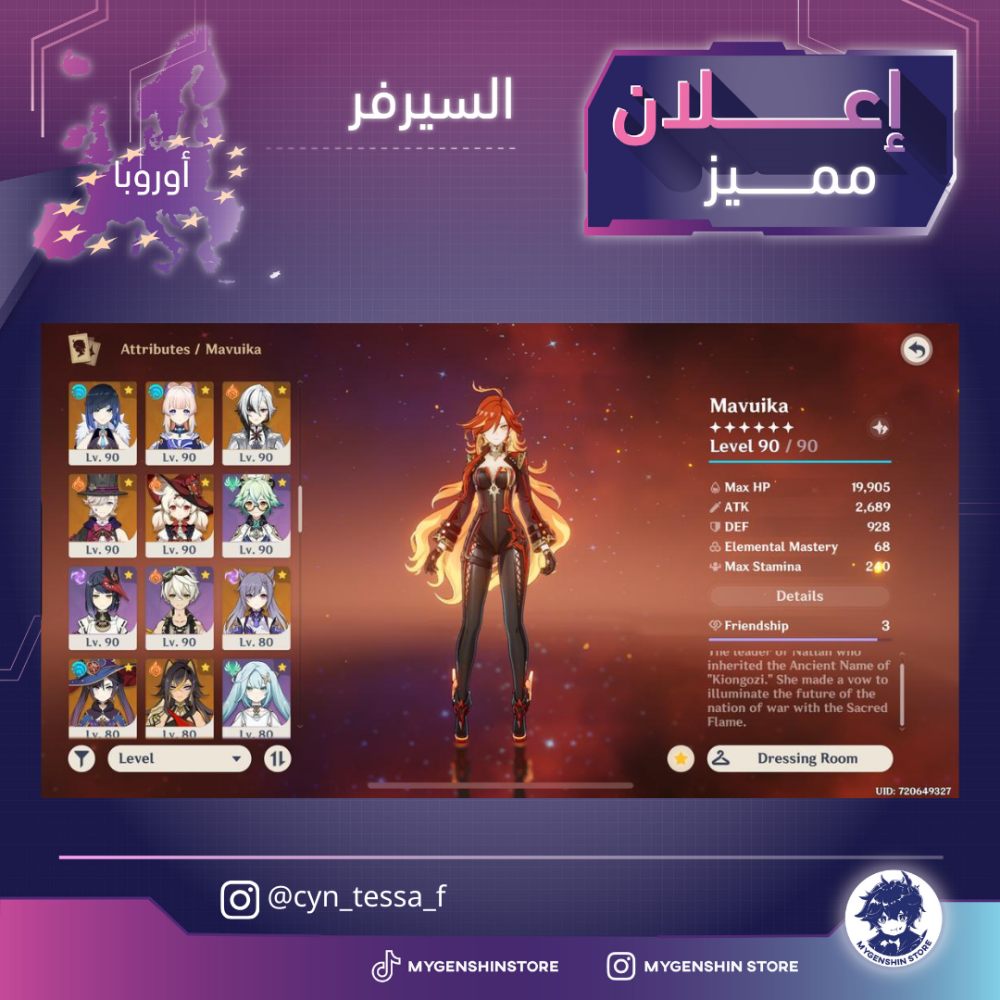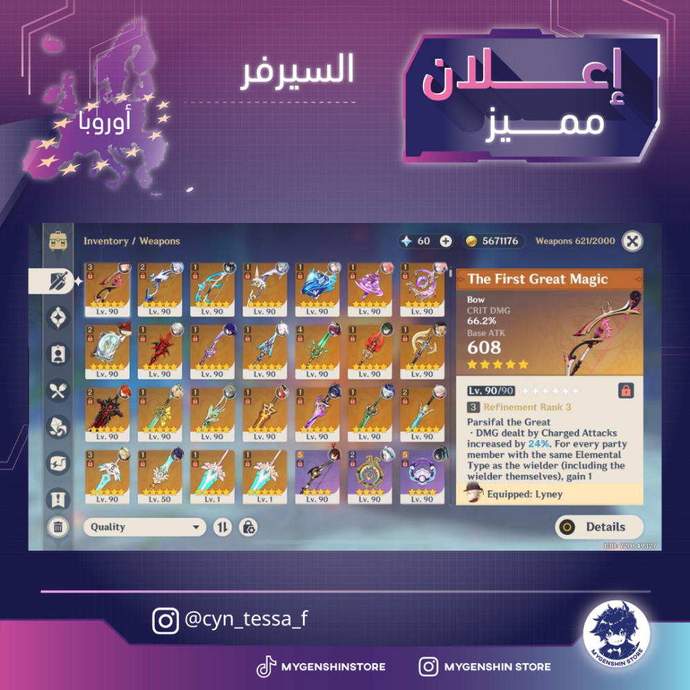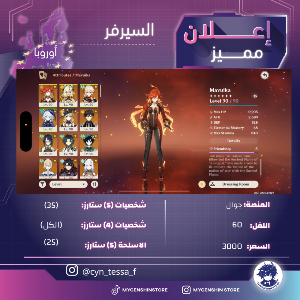(cyn_tessa_f) حساب سيرفر اوروبا لفل 60يحتوي(35 شخصية)