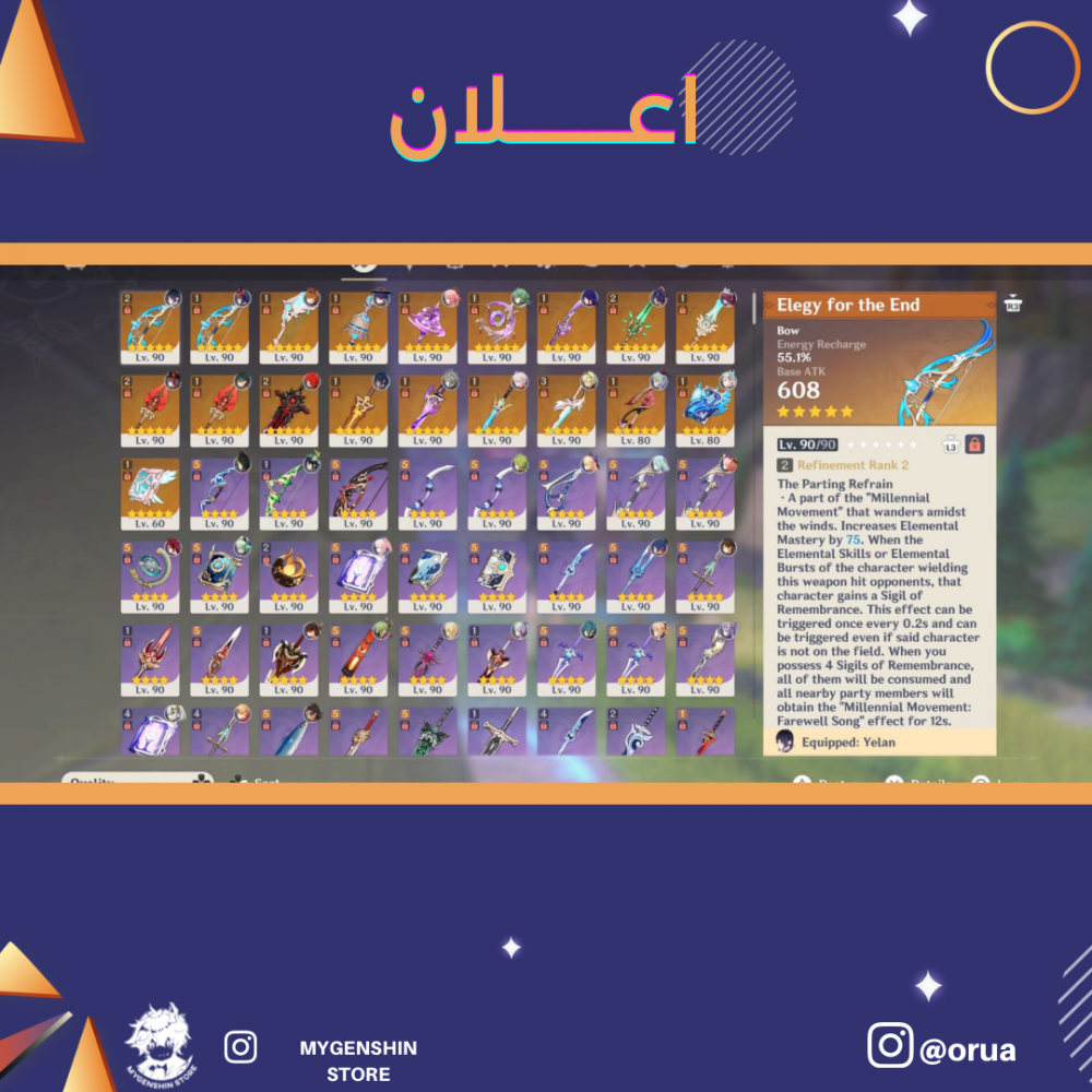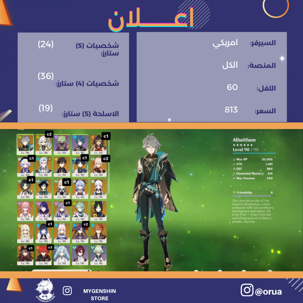 (orua) حساب سيرفر امريكي لفل 60 يحتوي (24 شخصية)