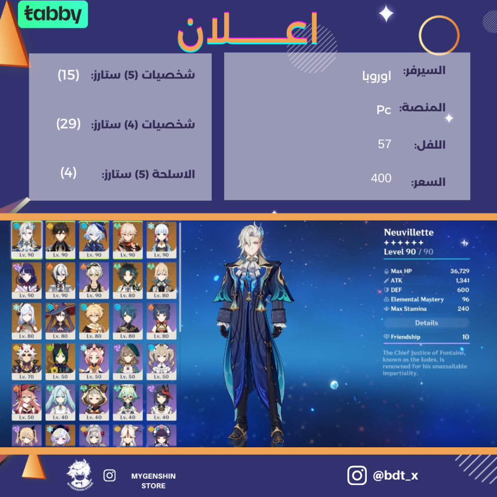 (bdt_x) حساب سيرفر اوروبا لفل 57 يحتوي (15 شخصيه)