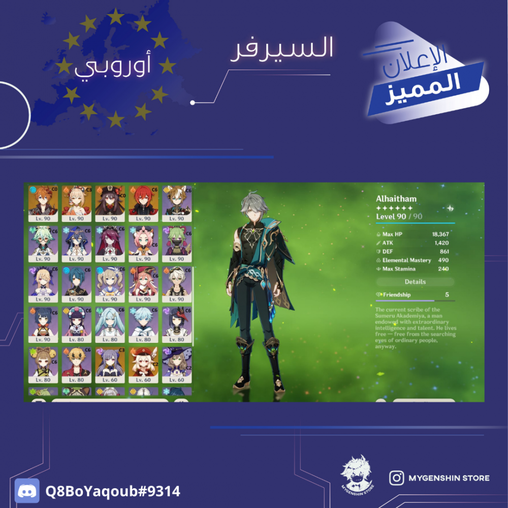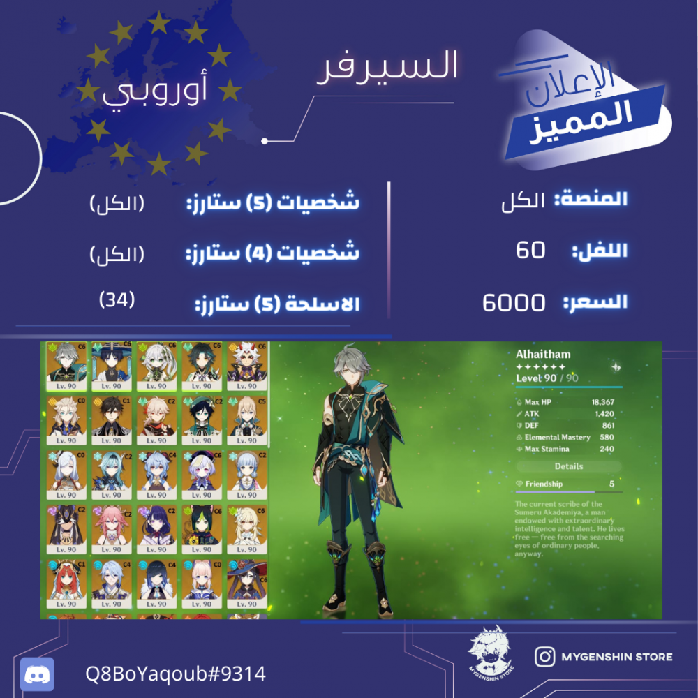 (Q8BoYaqoub#9314) حساب سيرفر اوروبا لفل60 يحتوي (كل الشخصيات)