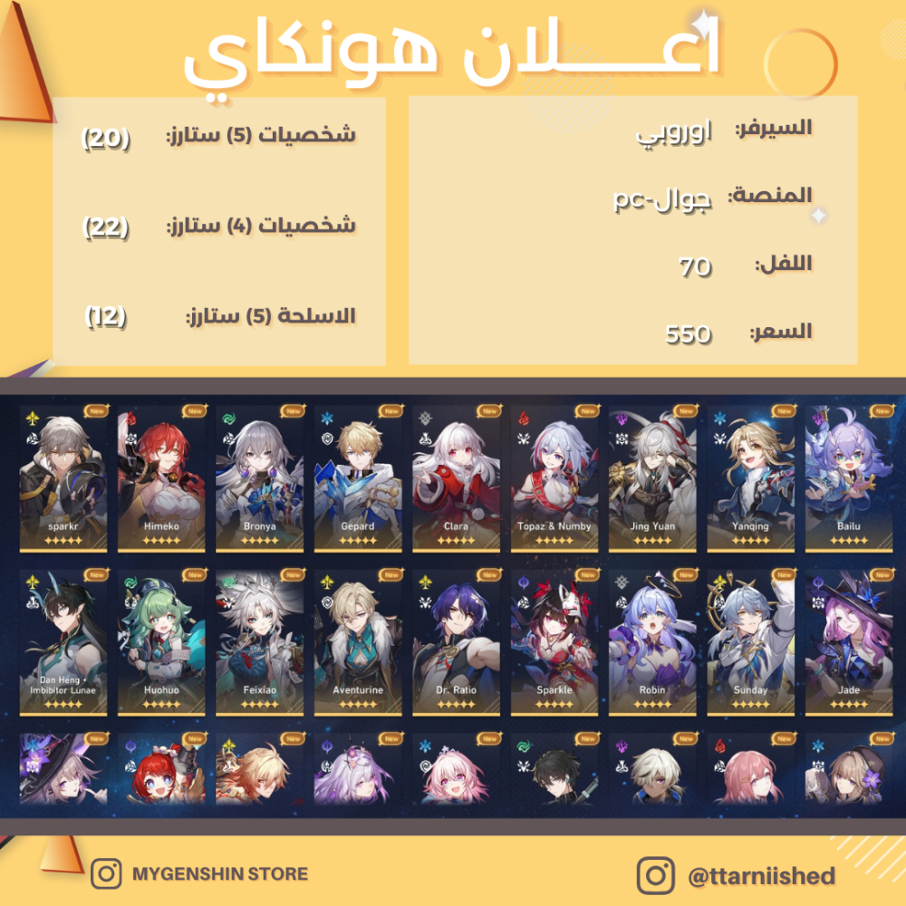 (ttarniished) حساب سيرفر اوروبا لفل 70يحتوي(20 شخصية)