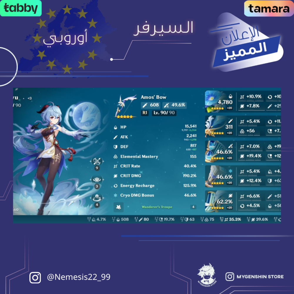 (Nemesis22_99) حساب سيرفر اوروبا لفل 59 يحتوي (28 شخصيه)