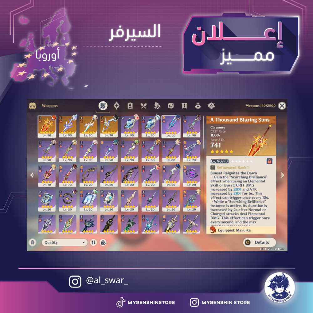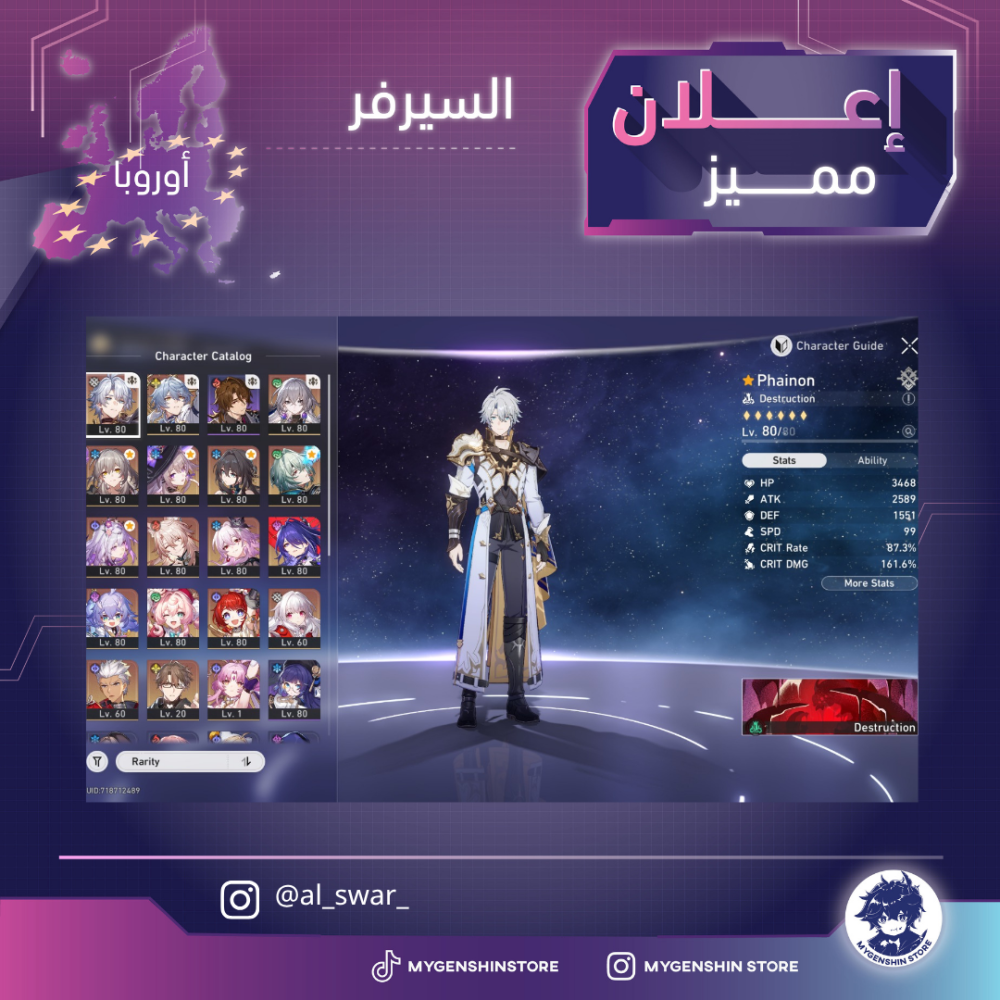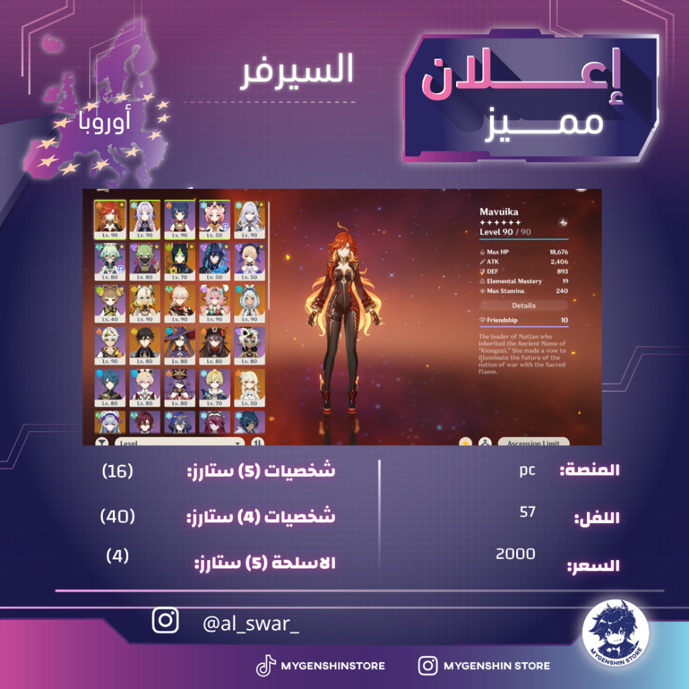 (al_swar_) حساب سيرفر اوروبا لفل 60يحتوي(16 شخصية)