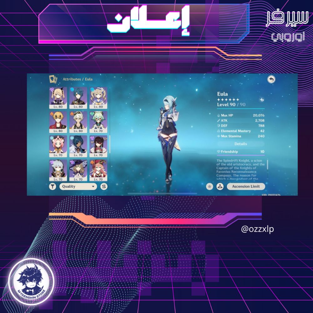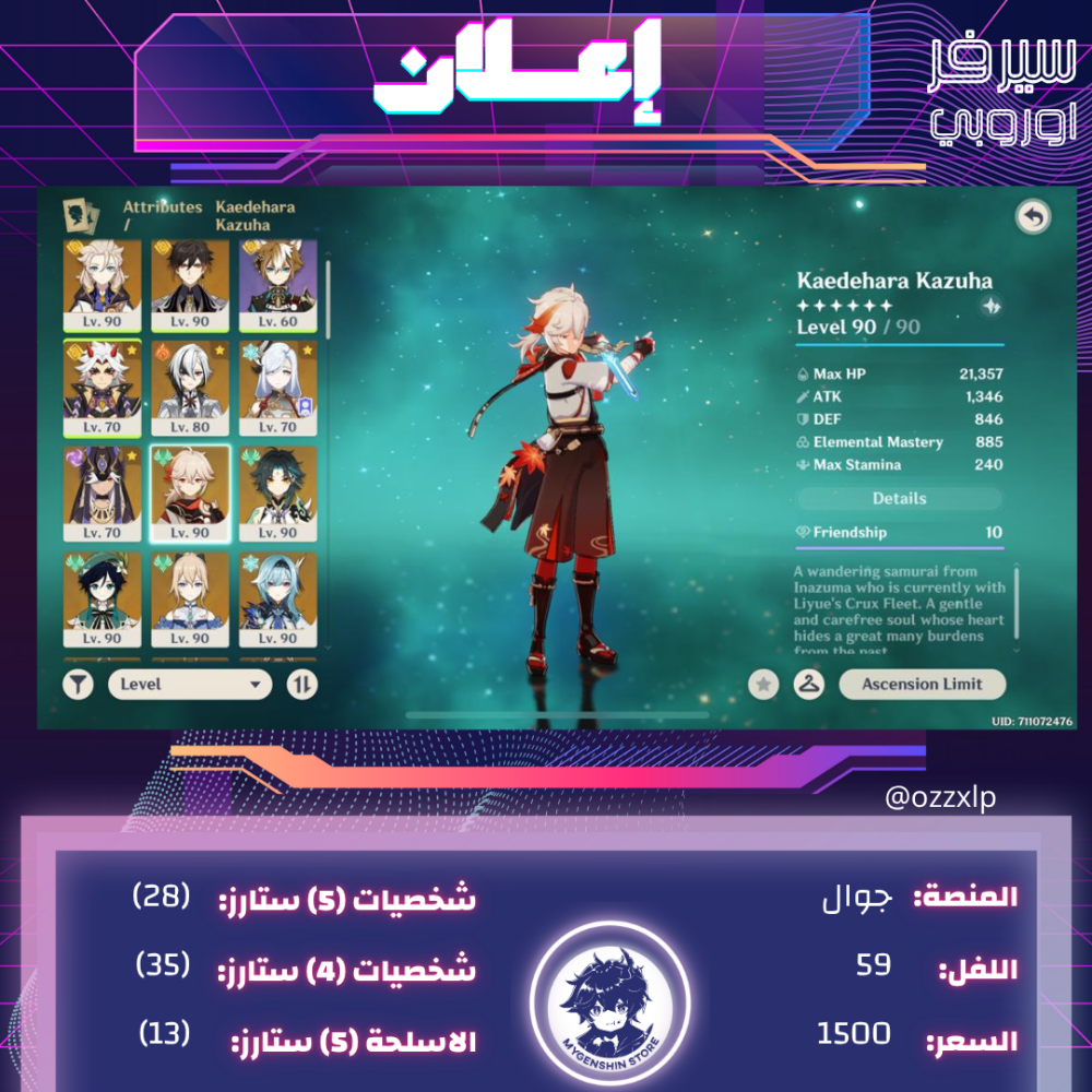 (ozzxlp) حساب سيرفر اوروبا لفل 59يحتوي(28 شخصية)