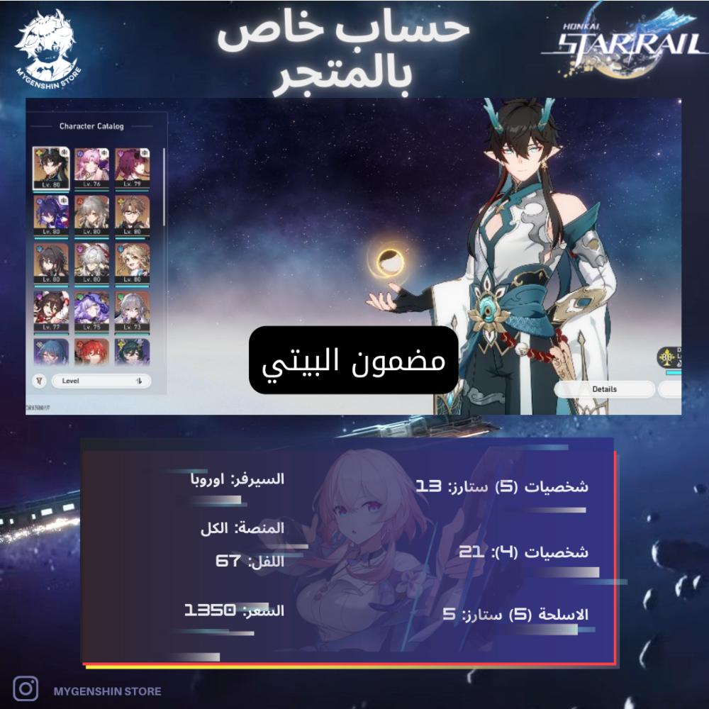 (حساب خاص بالمتجر) حساب سيرفر اوروبا لفل 67 يحتوي (13 شخصيه