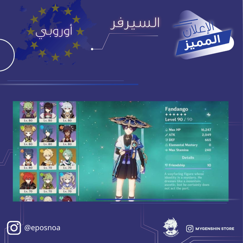 (eposnoa) حساب سيرفر اوروبا لفل 60 يحتوي (22 شخصيه